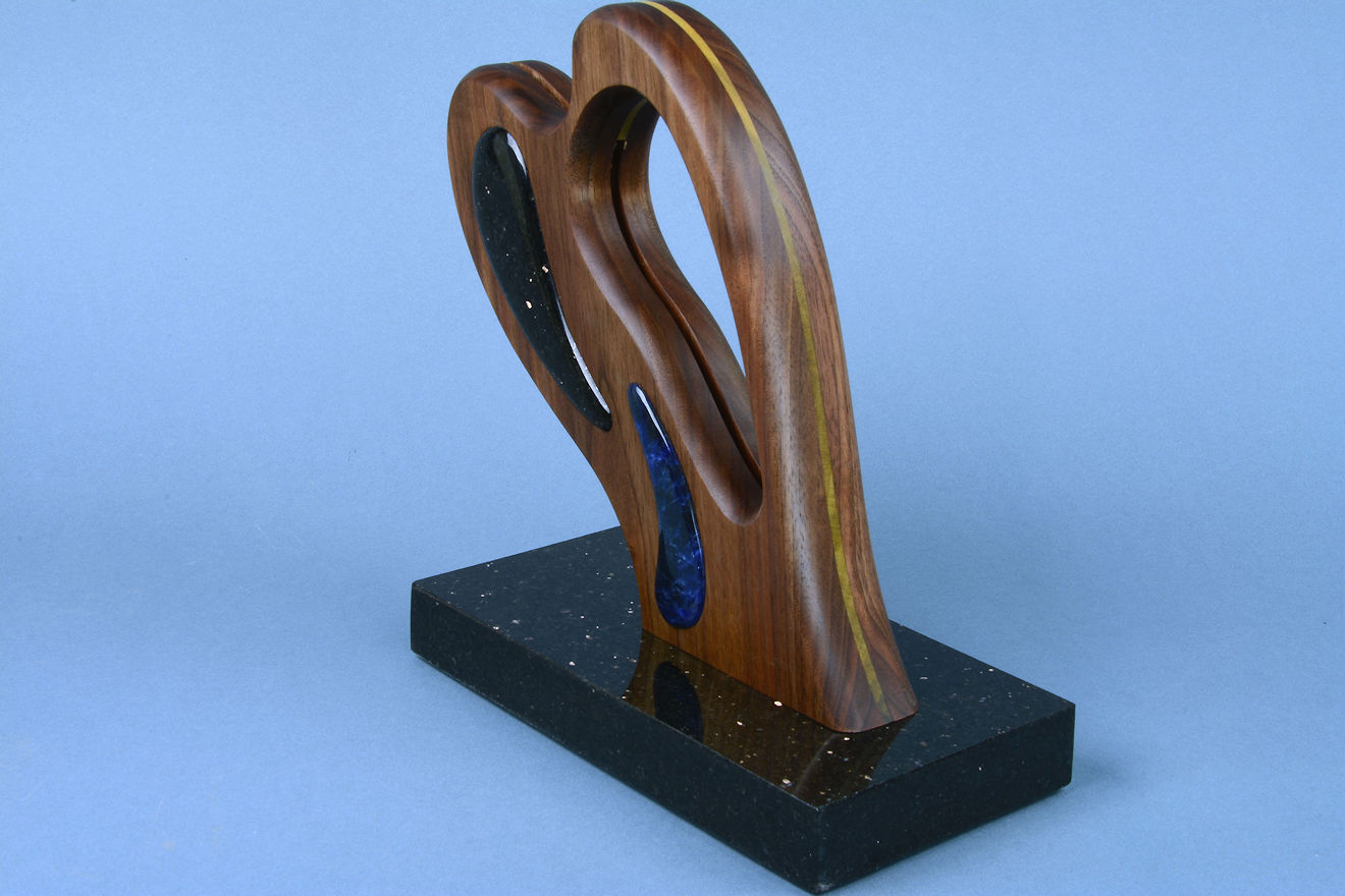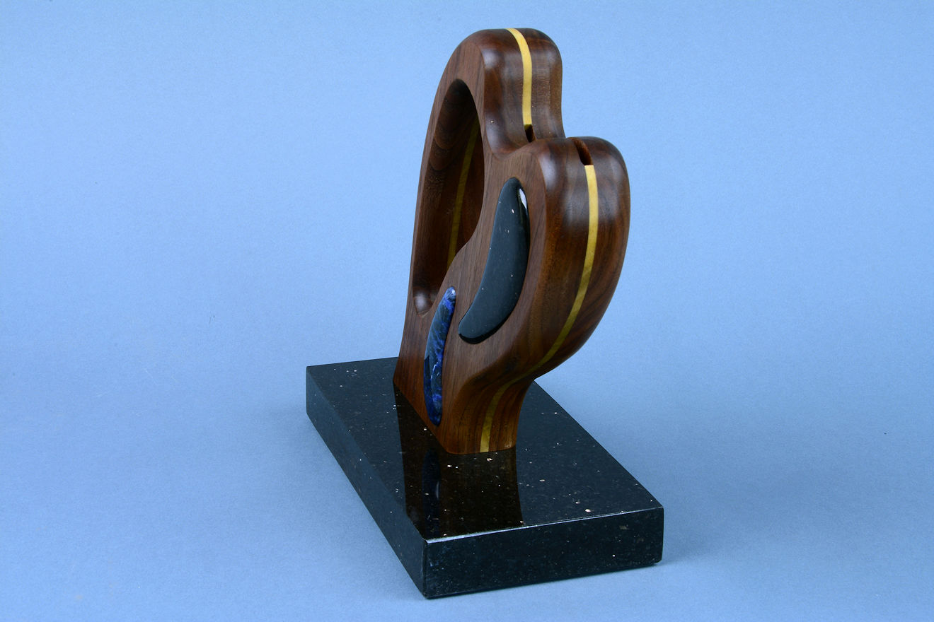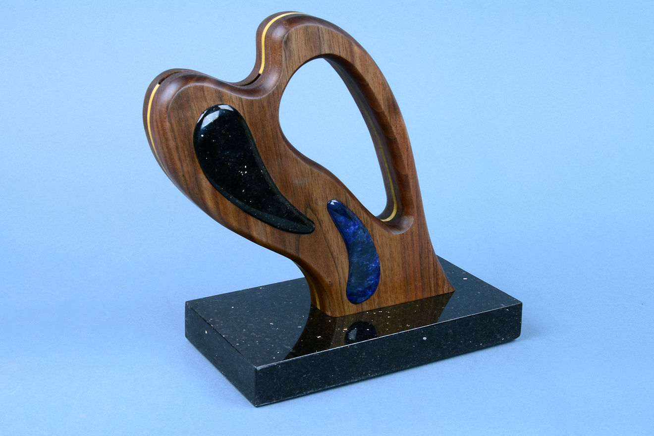 Black Galaxy Granite, neoprene feet, engraved black lacquered brass,