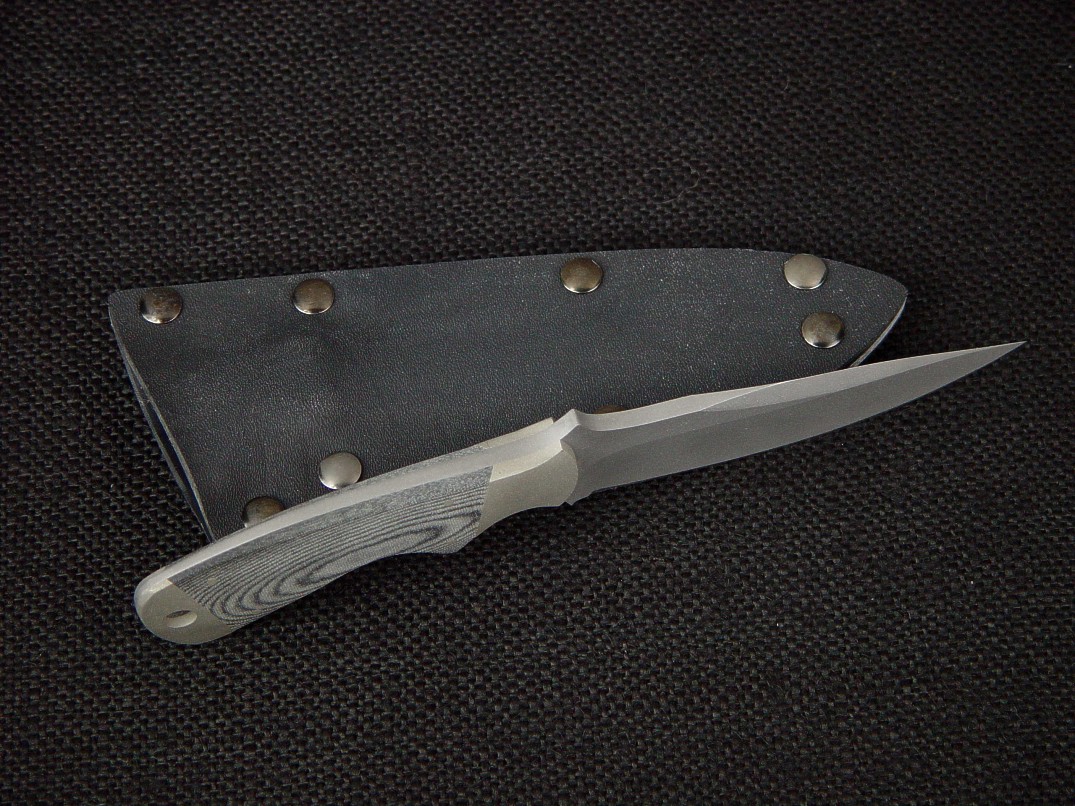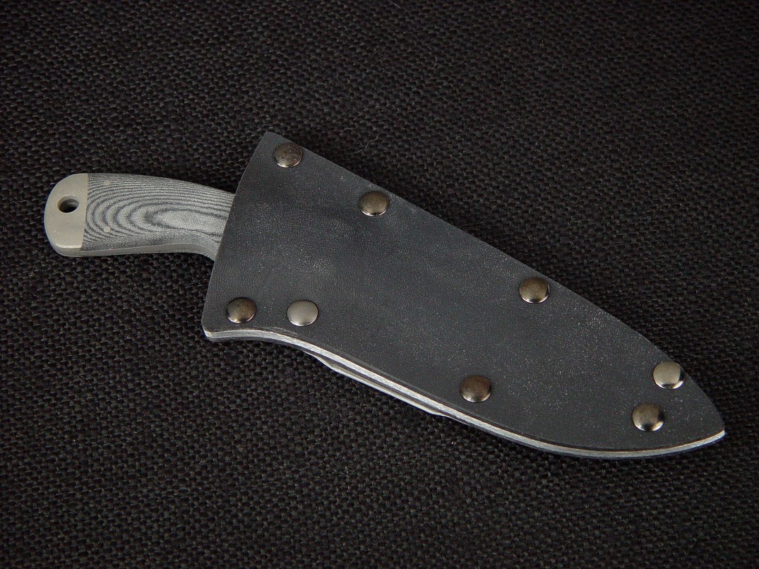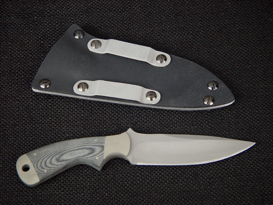Made for tactical use, Combat Search and Rescue, or defense, the Creature is a proven design that combines a wide, strong blade with plenty of belly and a strong point in bead blasted 440C high chromium martensitic stainless steel blade, nickel silver bolsters, and a bead blasted canvas Micarta phenolic handle. This knife has a tension fit double thickness kydex sheath build over a 5052H32 corrosion resistant high strength aluminum welt frame and belt loops, secured with blued steel Chicago screws and posts. A tough, durable and ready knife for any challenge.
