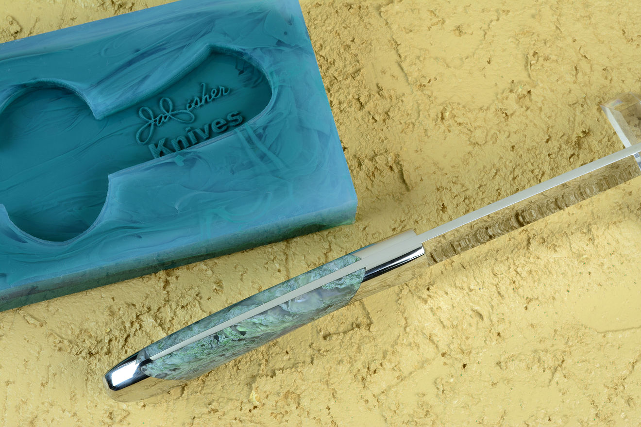 You'll see the greens of the knife handle and the clarity of the