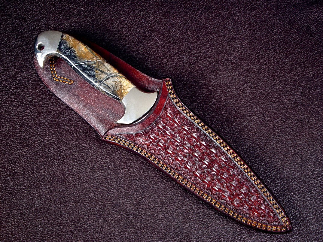 constructed of 9-10 oz. leather shoulder, hand-stamped and tooled
