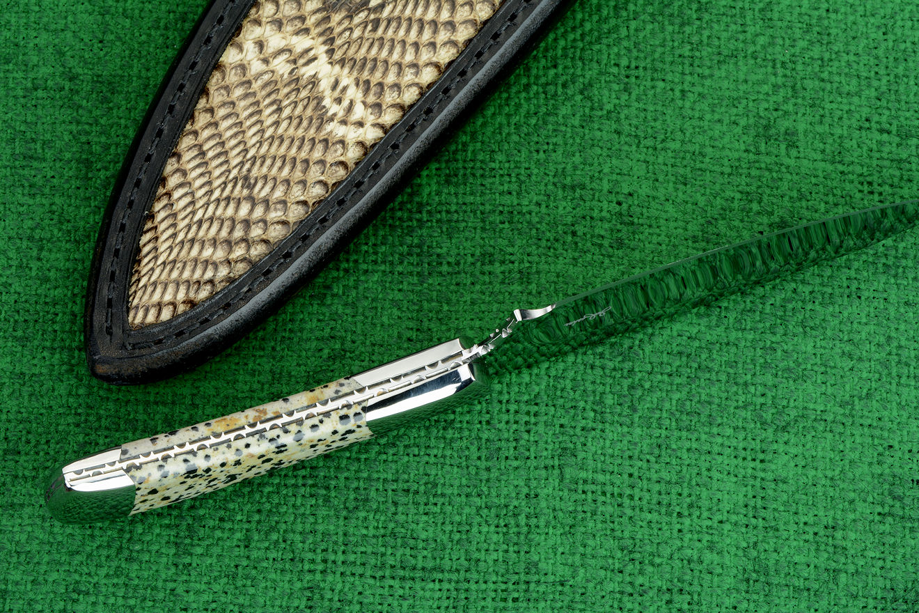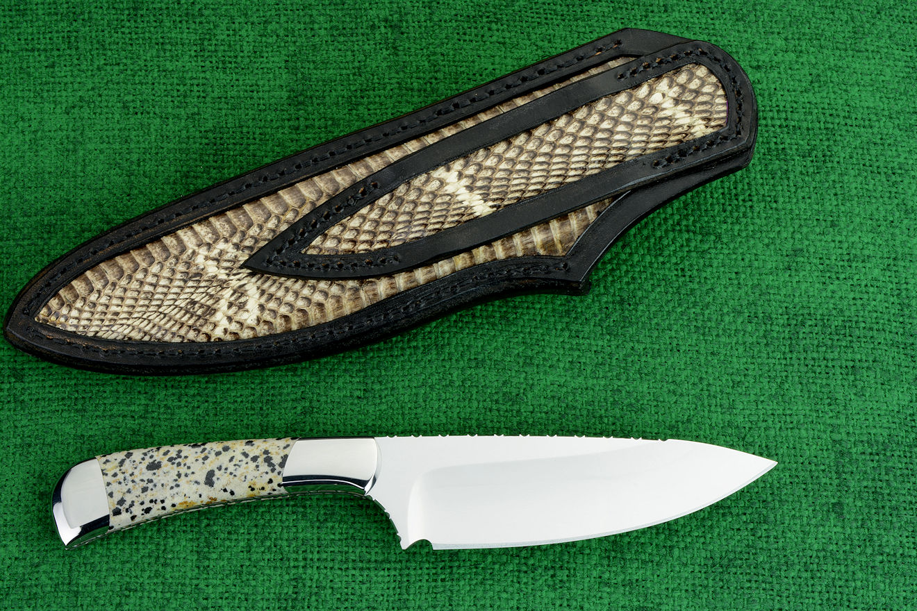 Sheath: Hand-carved leather, inlaid with Cobra skin
