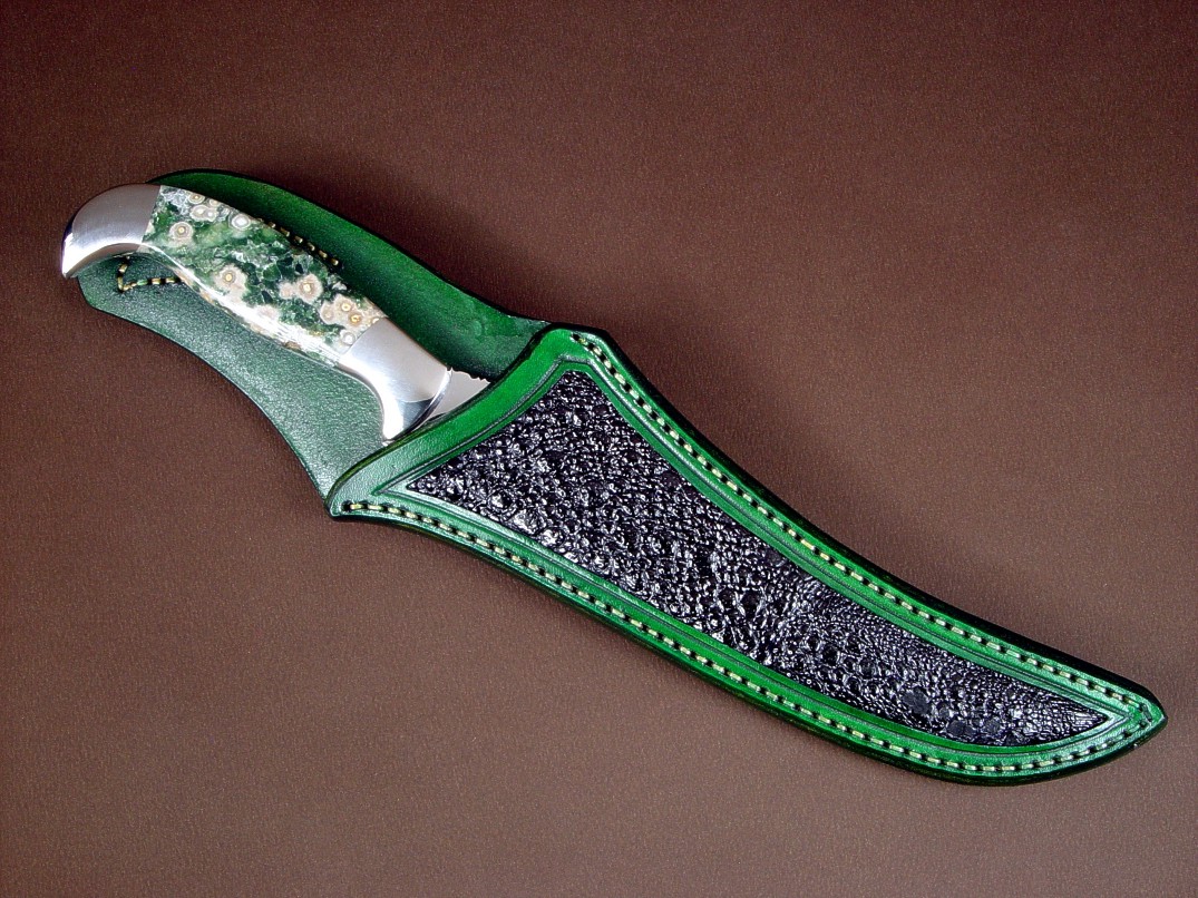 - Sheath: Hand-carved Leather inlaid with Black Frog Skin