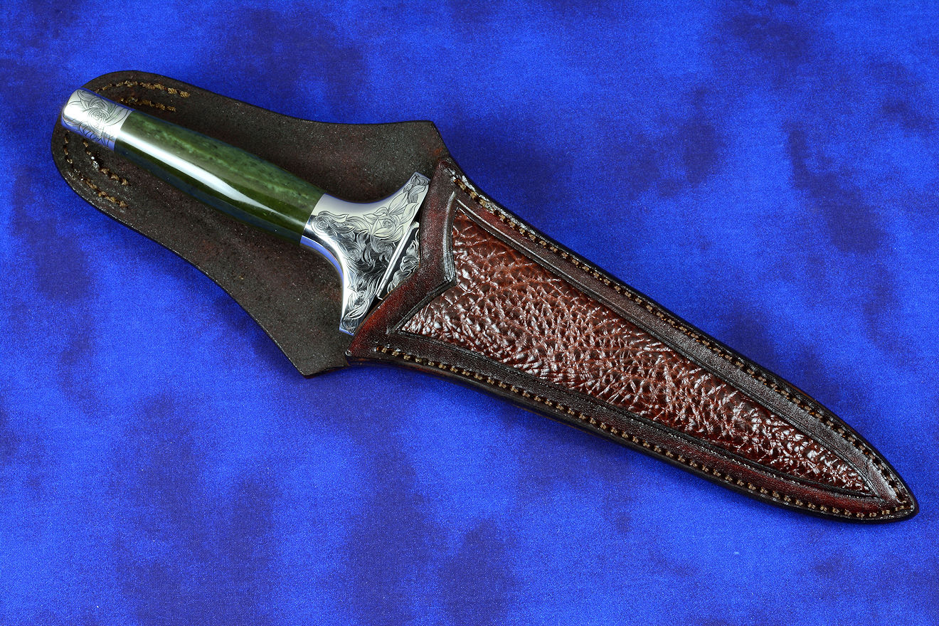 - Sheath: Hand-carved Leather Shoulder inlaid