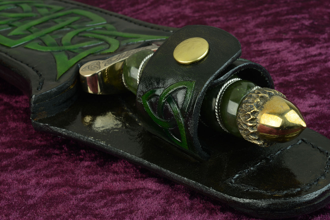interwoven knotwork. The pommel is an acorn of solid bronze, drilled