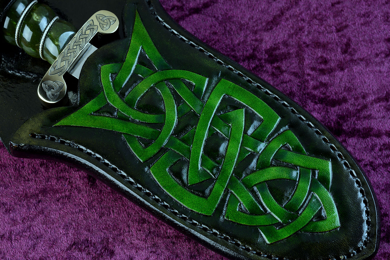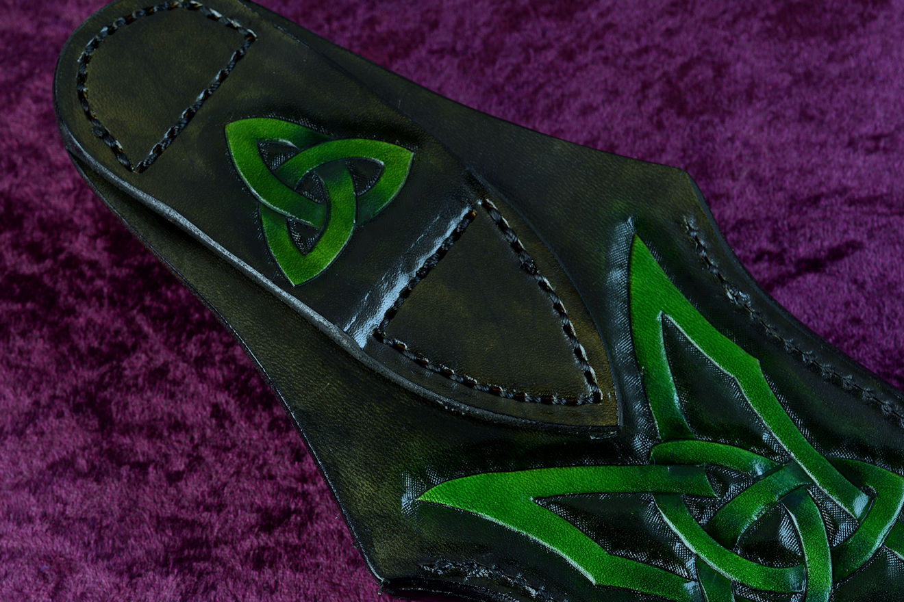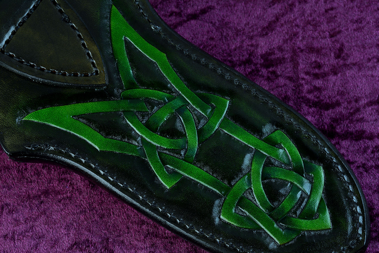 - Sheath: Hand-carved, Hand-dyed Leather Shoulder