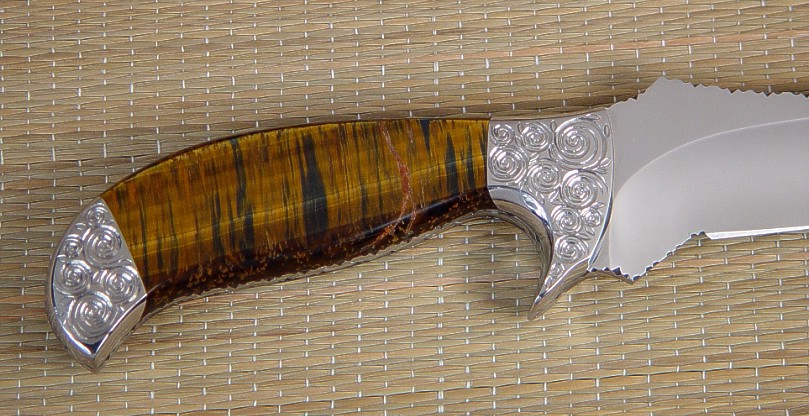 of silky bicolored Tiger Eye Quartz gemstone handle scales, an absolute