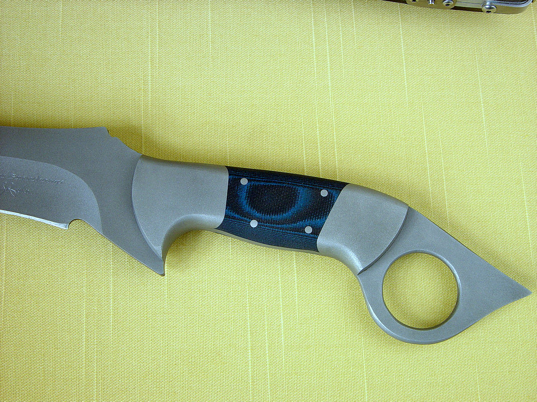 by a substantial ricasso. At the butt of the handle is a rear finger