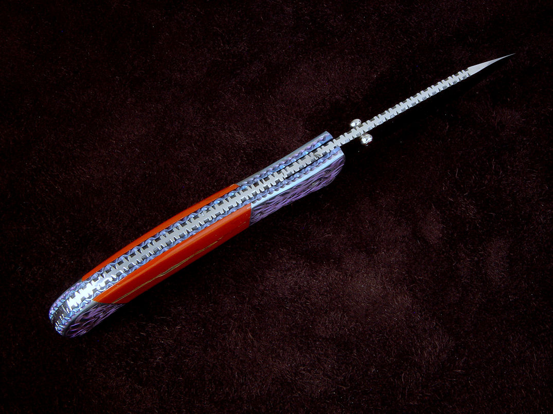 - Bolsters: Hand-engraved selectively anodized 6AL4V titanium