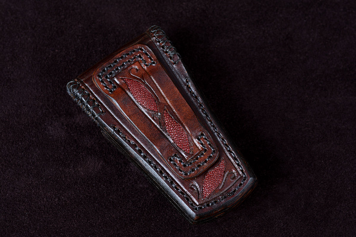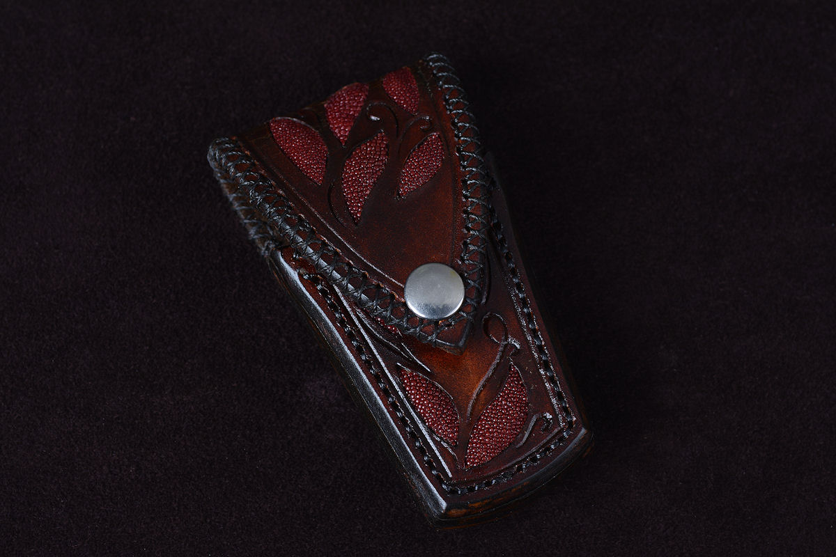 oz. thick, with 12 inlays of red rayskin. The inside is lined with