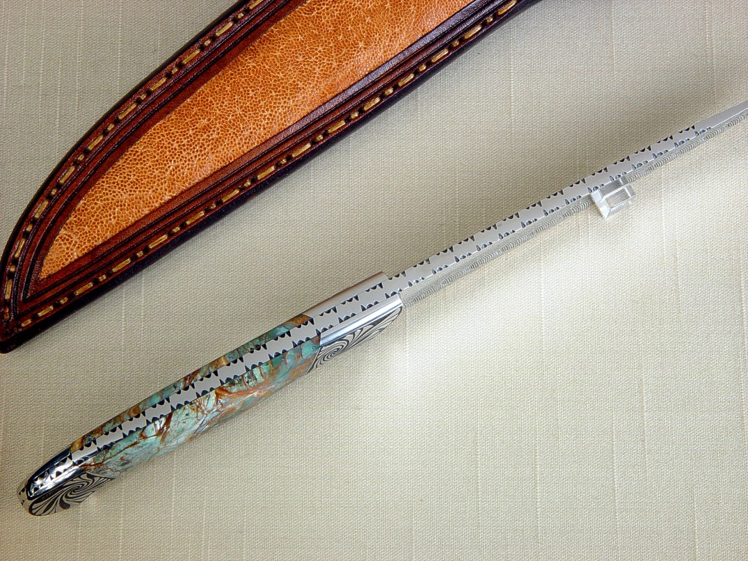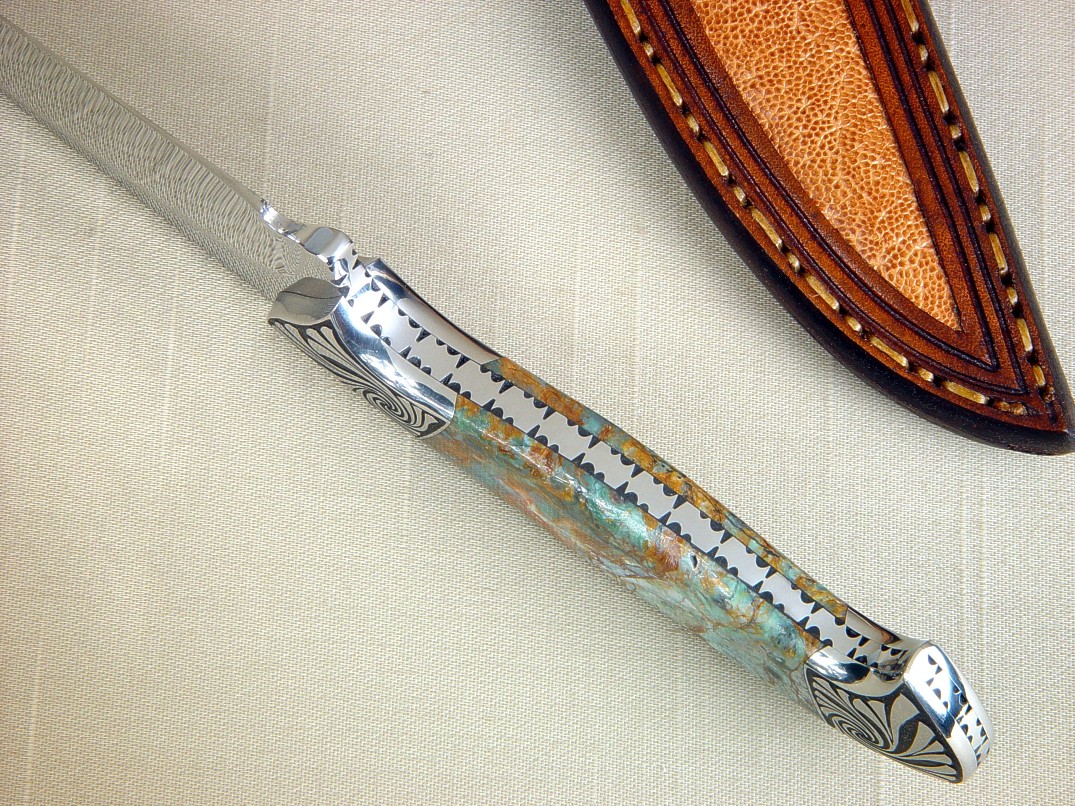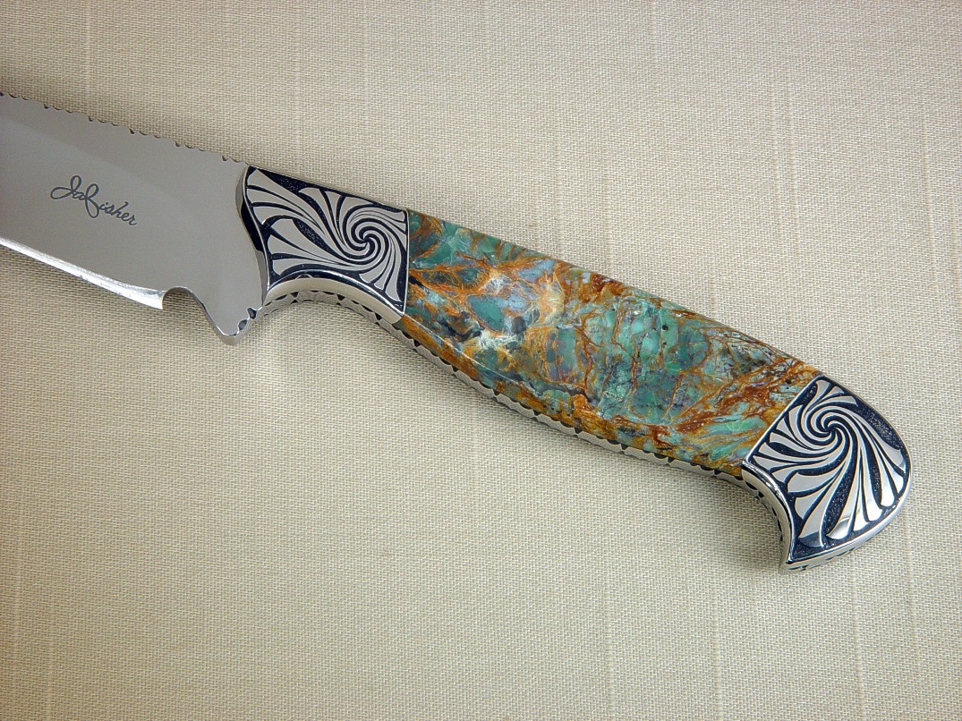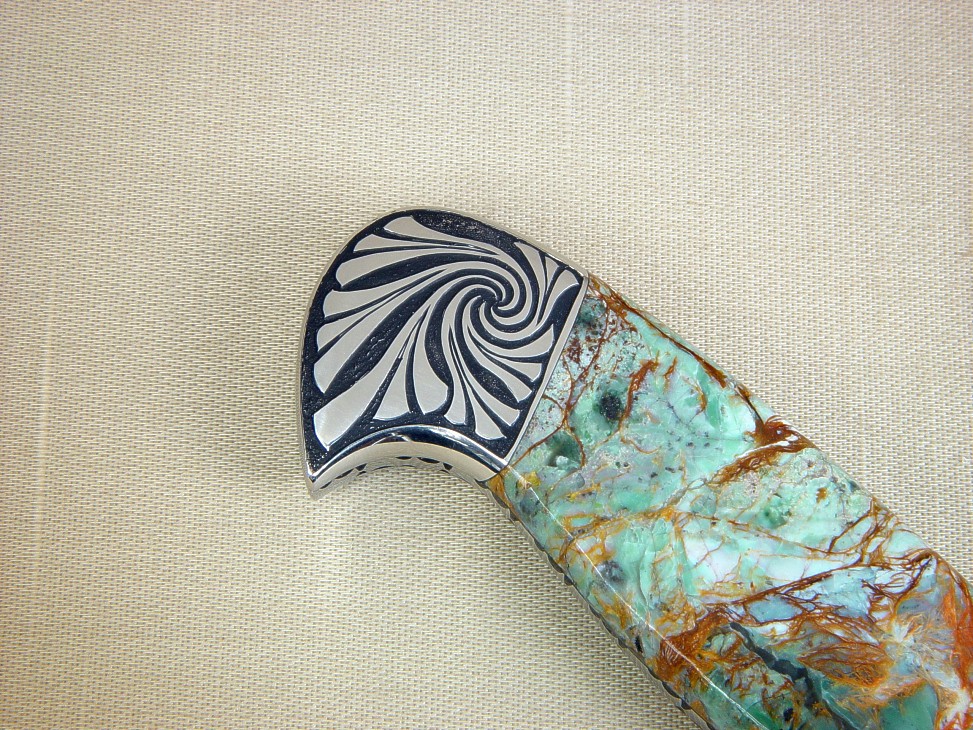 gemstone handle scales. This agate comes from an area around the ghost town of New Idria in central California and is striking in whites, cream, tans,