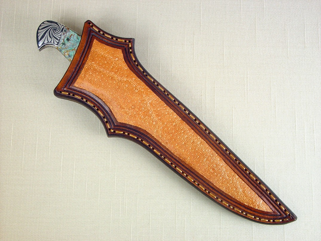 are inlaid the face, the back, and the belt loop, and the sheath body is