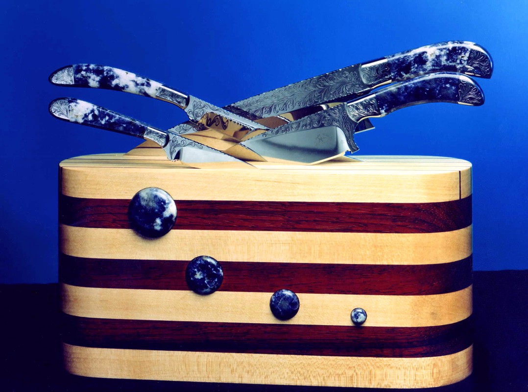 artistic idea, knife use, finish, materials, and embellishment
