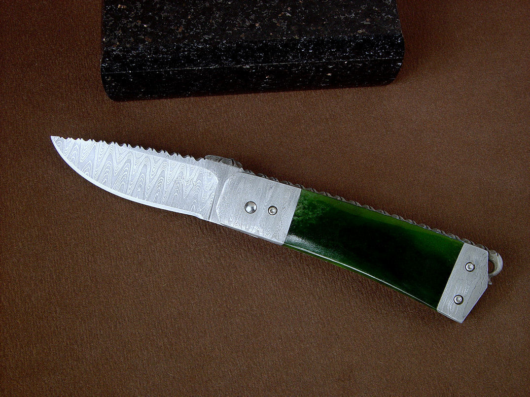 Siberian jade handle is shockingly green. The knife seems to have been