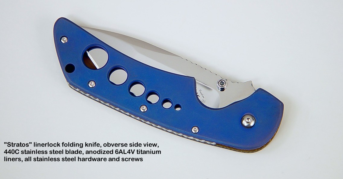While most of my knives are fixed blade, I also make folding knives. Also called folders, pocket knives, liner locks, lock backs, clip knives and other names, folding knives are simply knives with blades that pivot into the handle. Knives that have blades that slide, clip, or mount to the handle in other ways are excluded here.