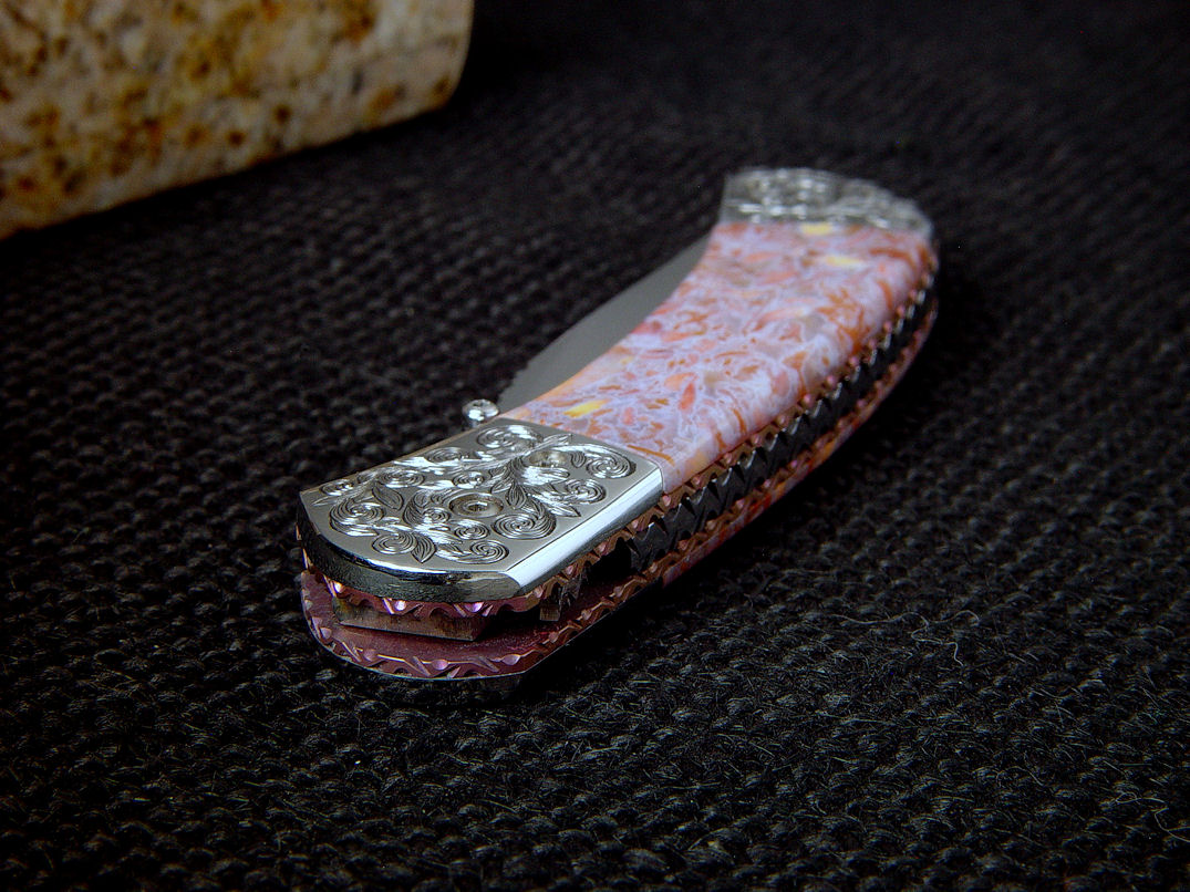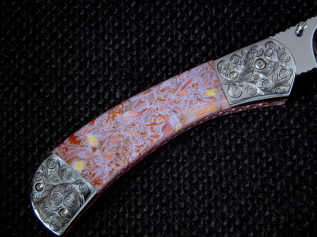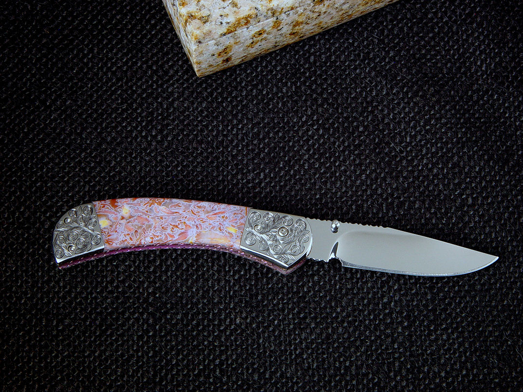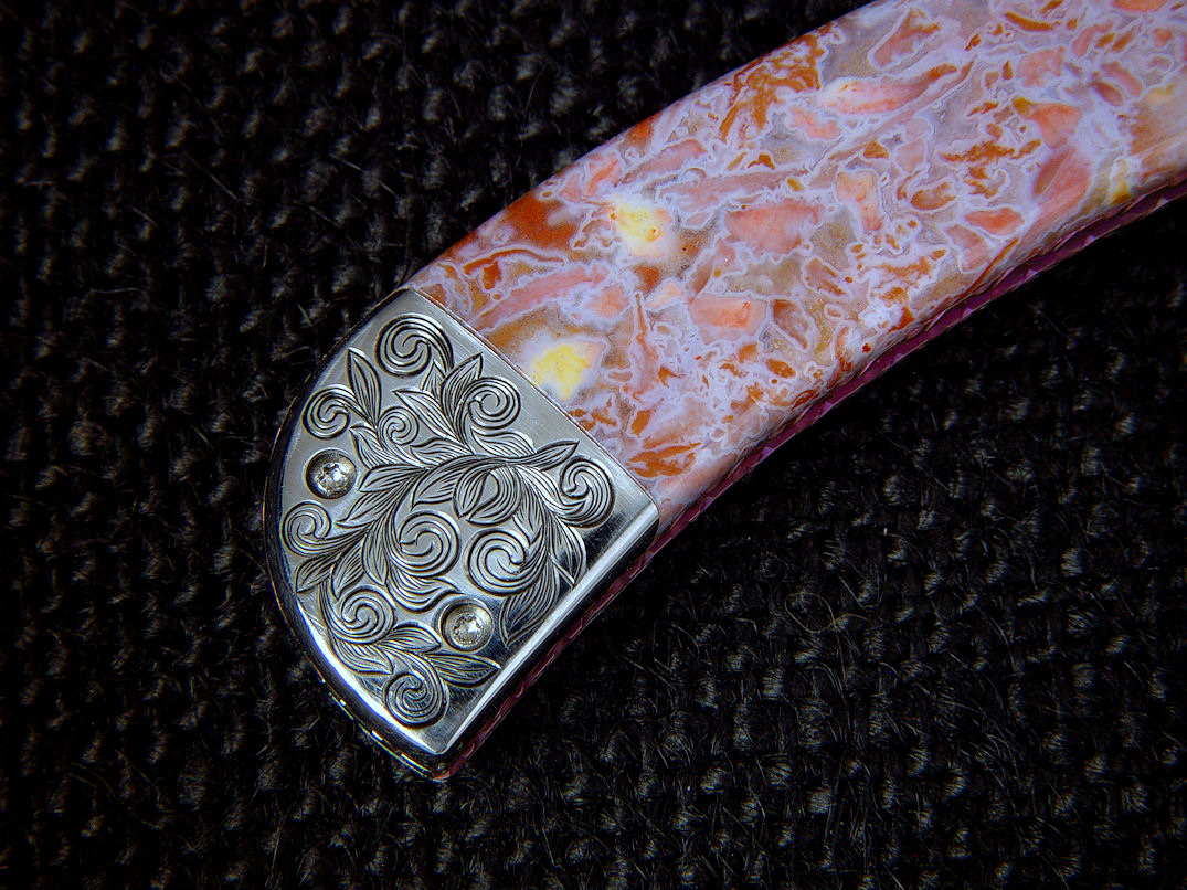 nicely compliment the gemstone handle scales. The bolsters are made