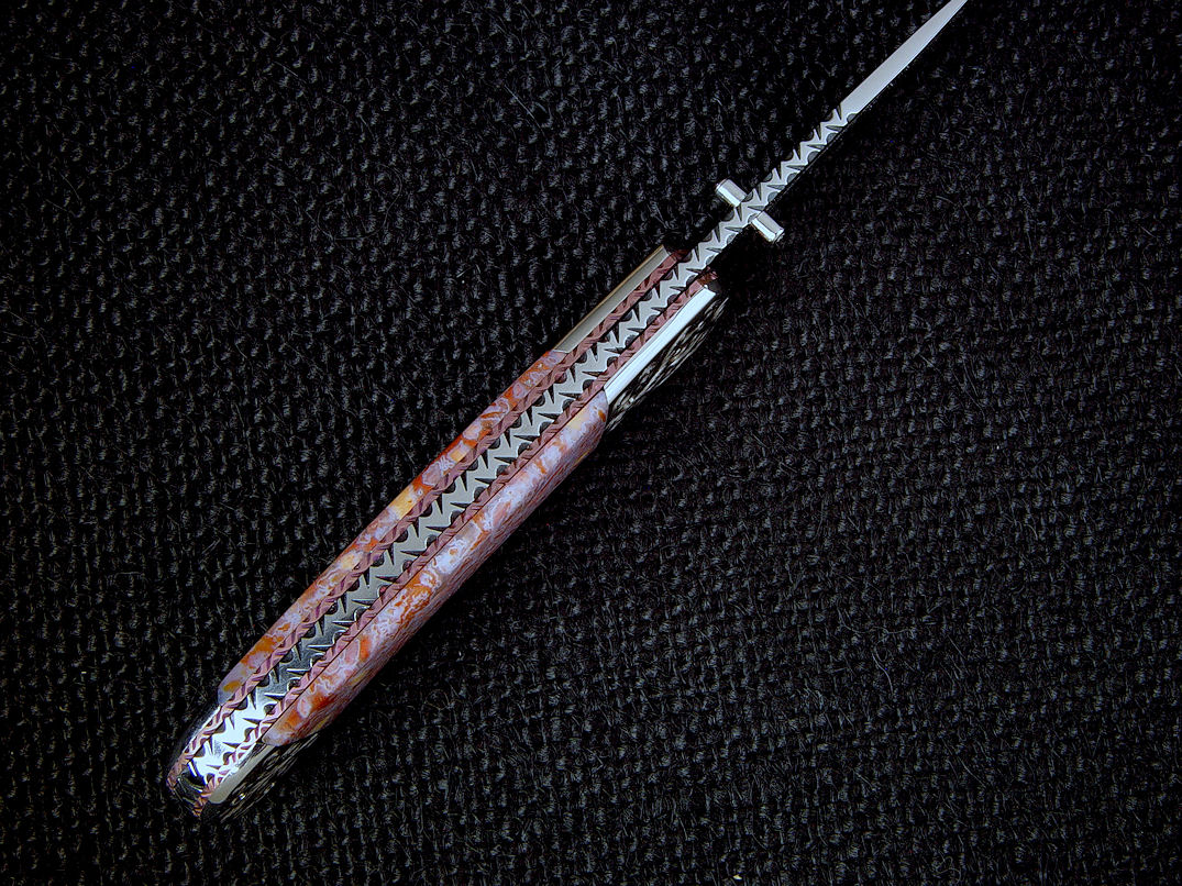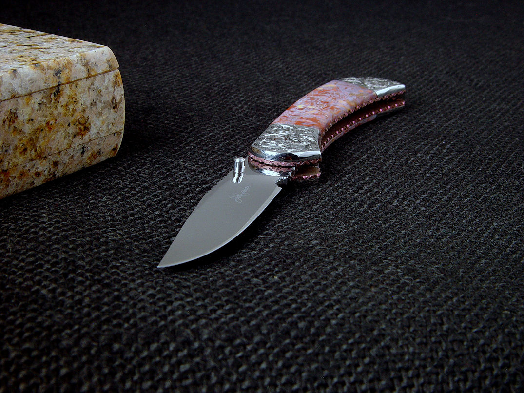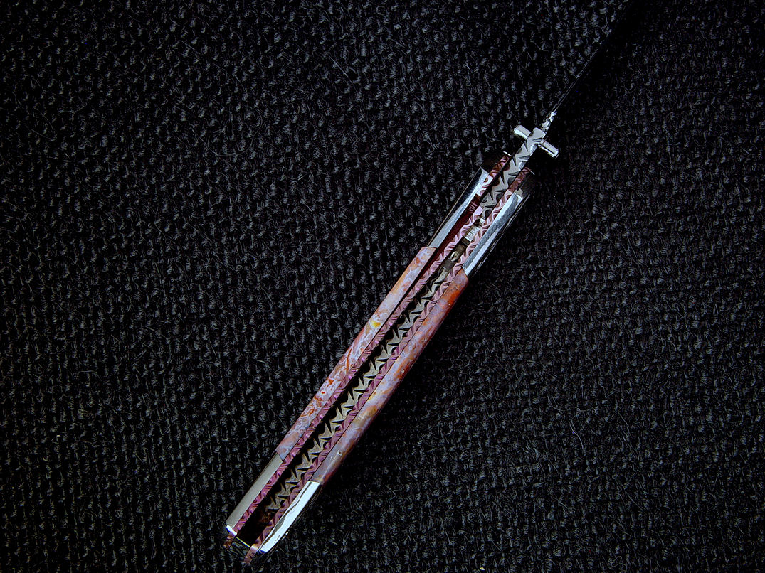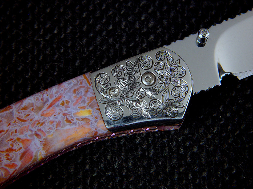 nicely compliment the gemstone handle scales. The bolsters are made