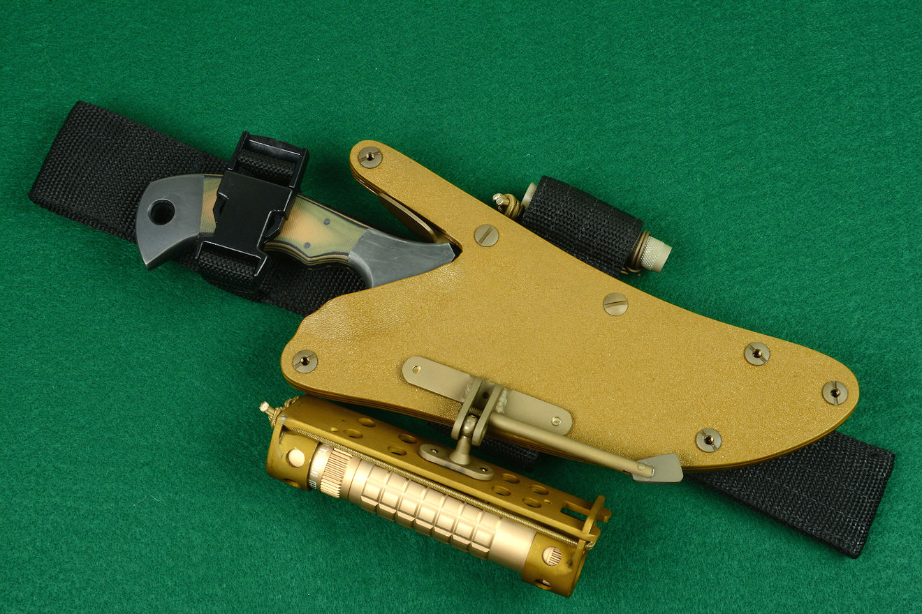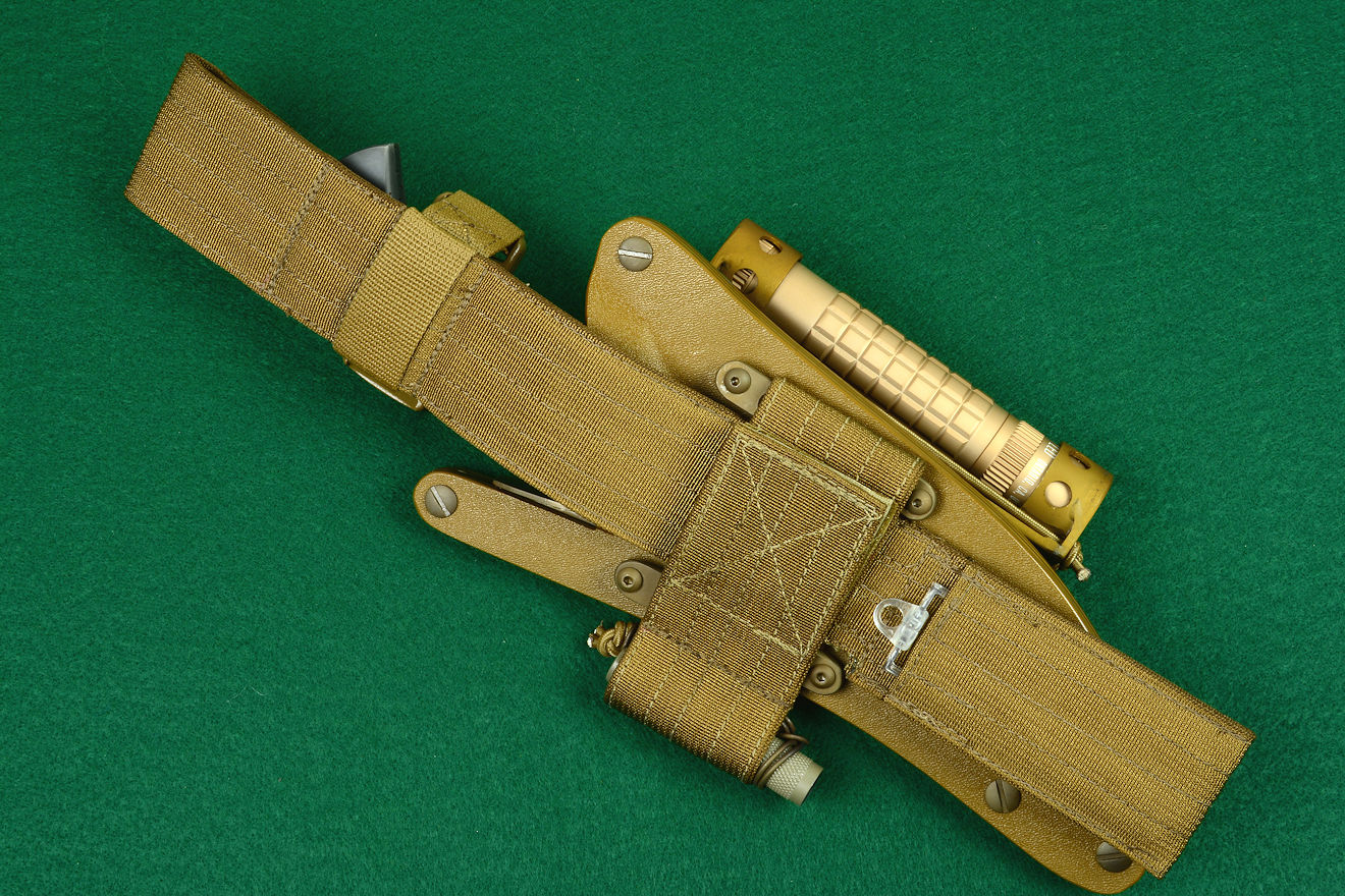 allows wearing with locking sheath and knife sheath below
