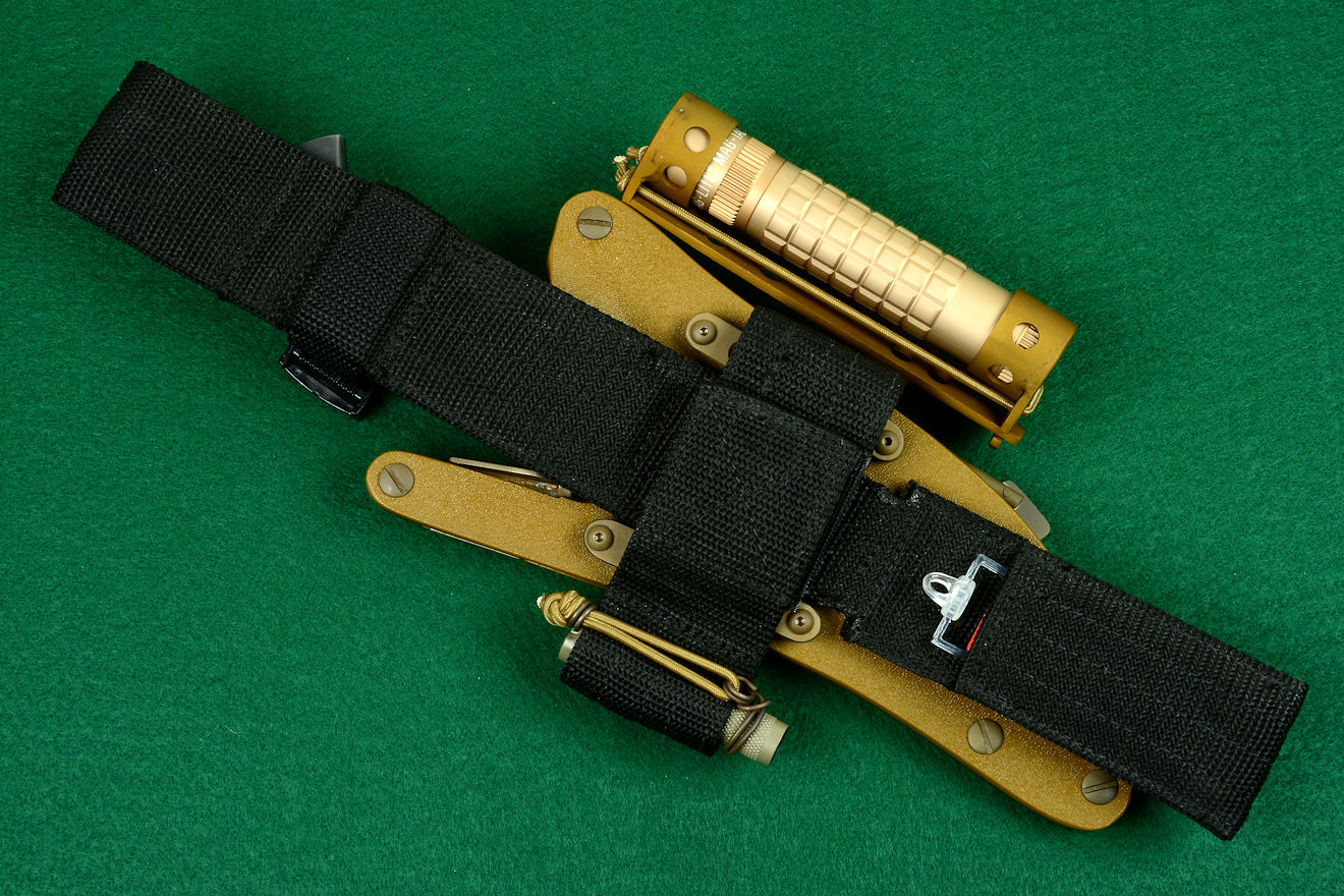 allows wearing with locking sheath and knife handle just