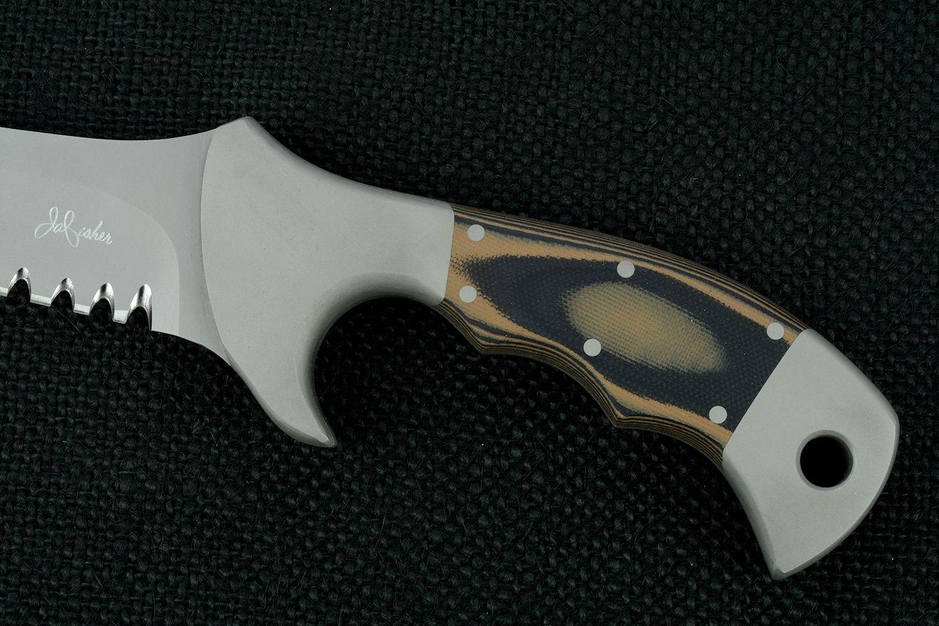 through tough materials and textiles. The knife is