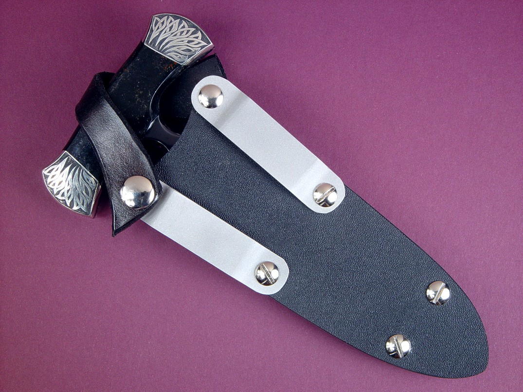 Chicago screws. This sheath has die-formed aluminum belt loops that