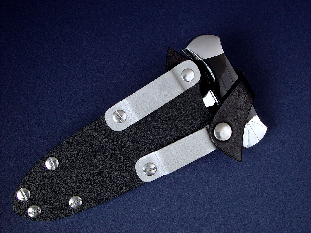 Chicago screws. This sheath has die-formed aluminum belt loops that