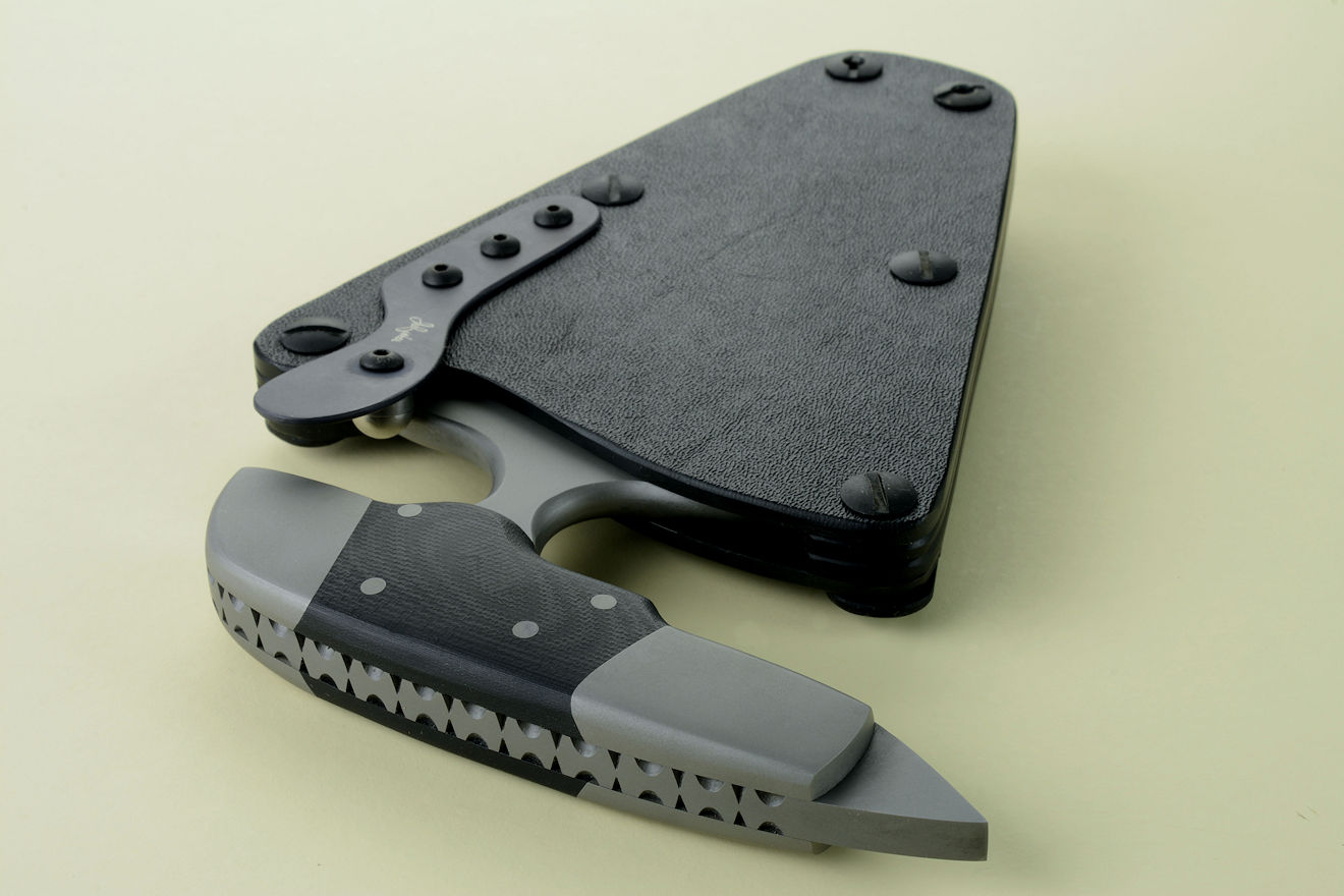 • Sheaths: With all my tactical combat counterterrorism professionals, the sheath is just as important as the knife, for without it, the knife is not convenient, not comfortable, not accessible, and not useful. So my clients requested several sheath options, depending on their wear environment, gear, accessibility, visual queues, and individual mission needs. The sheaths needed to secure the knife well, yet allow it to be easily accessed by the professional in a heartbeat if necessary.