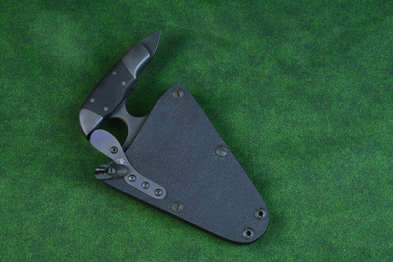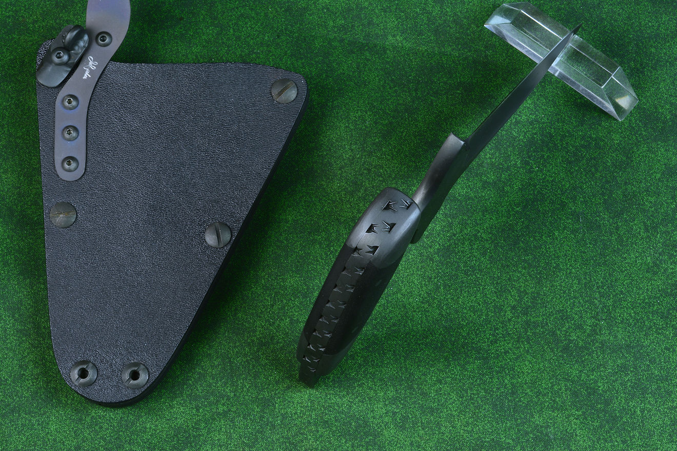 - Materials: Hybrid Tension Tab-Locking in Black Kydex, Black Anodized Aluminum Alloy, Blackened Stainless Steel, anodized 6AL4V Titanium.