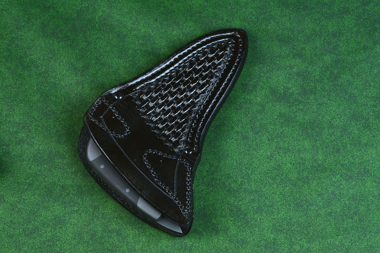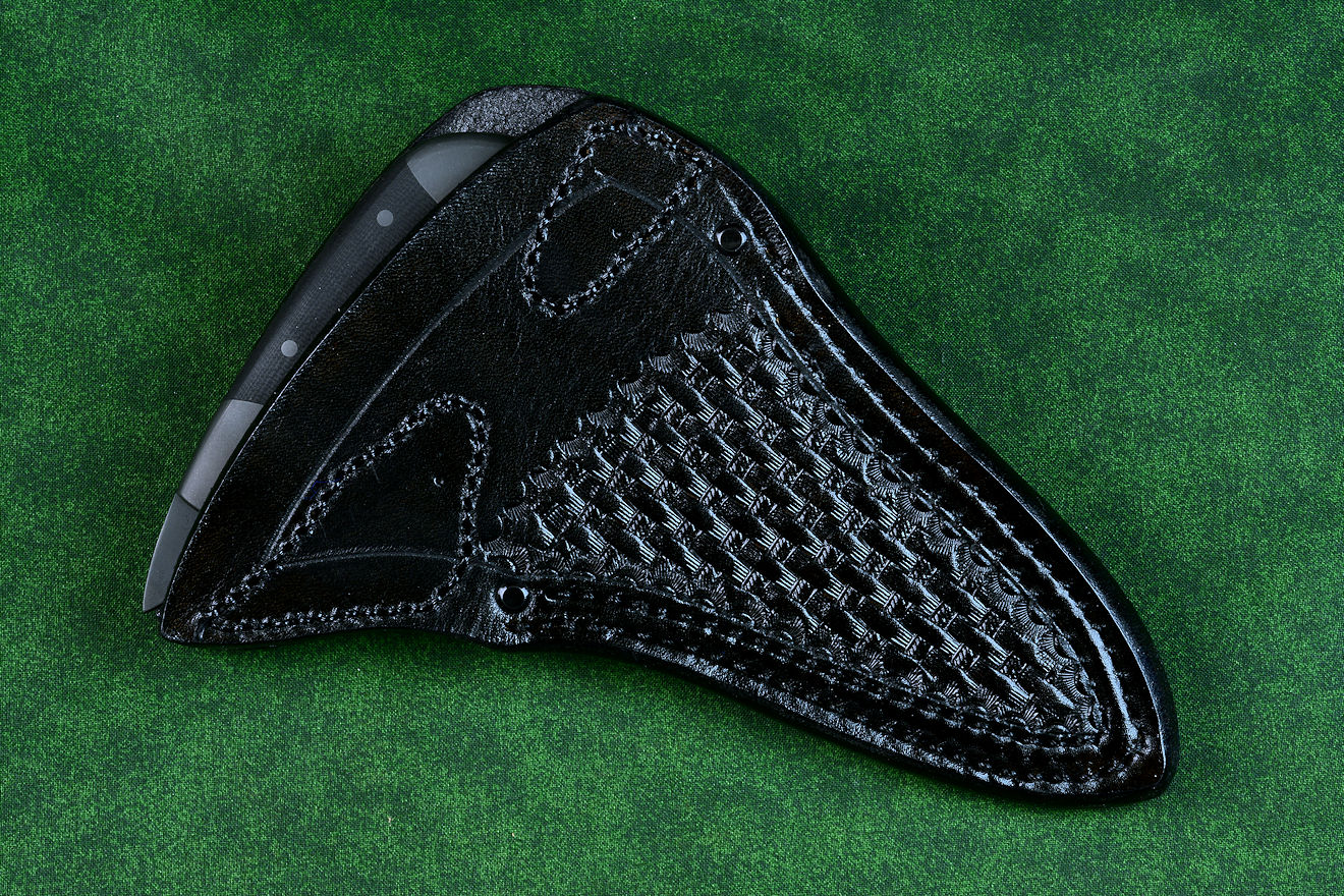 sheath in a bordered basketweave design, and dyed it black. The first thing you'll notice