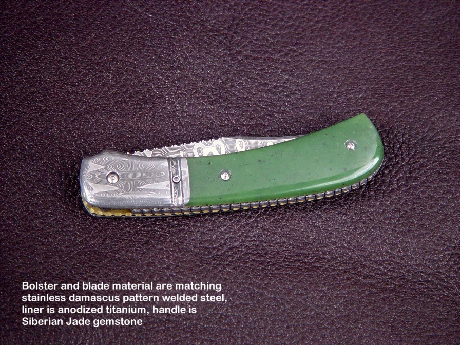 Disadvantages: The stainless tool steels are very hard to engrave, and most engravers won't even touch them. They do not reach their full stain resistance until they are hardened and tempered. So corrosion resistance, while good, is not as high as the blade (if the blade is made of the same stainless tool steel), because the bolsters must be mounted after heat treating. Though I've used these in the past, I do not use or recommend this bolster material; there are currently better choices.