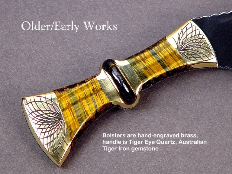 The choice of bolster, guard, or fitting material depends on the knife design, the intended use, and the artistic arrangement of the handle components. There are many more bolster materials, and I'll add examples as I can.