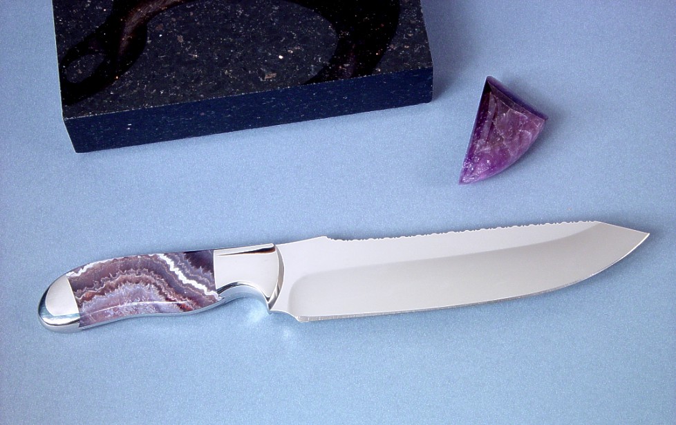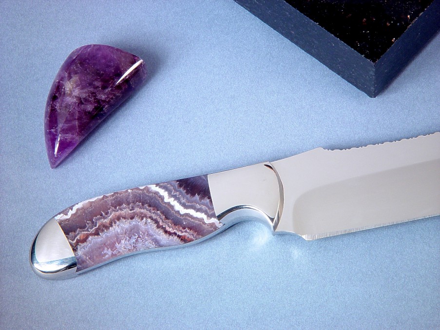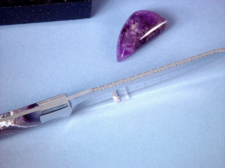 hold a bedded, perfectly book matched pair of Lace Amethyst gemstone handle