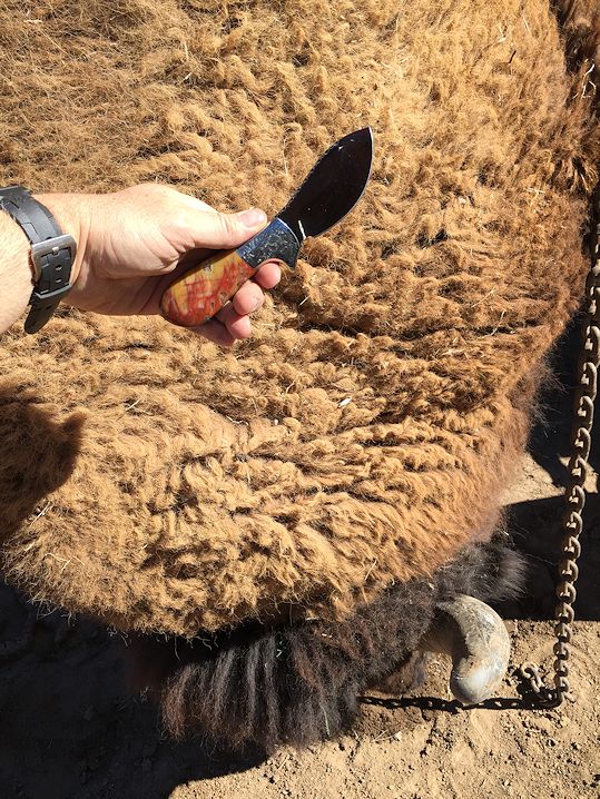 together on one of the most demanding skinning knife chores, skinning an American Bison (Buffalo). This huge beast has one of the thickest,