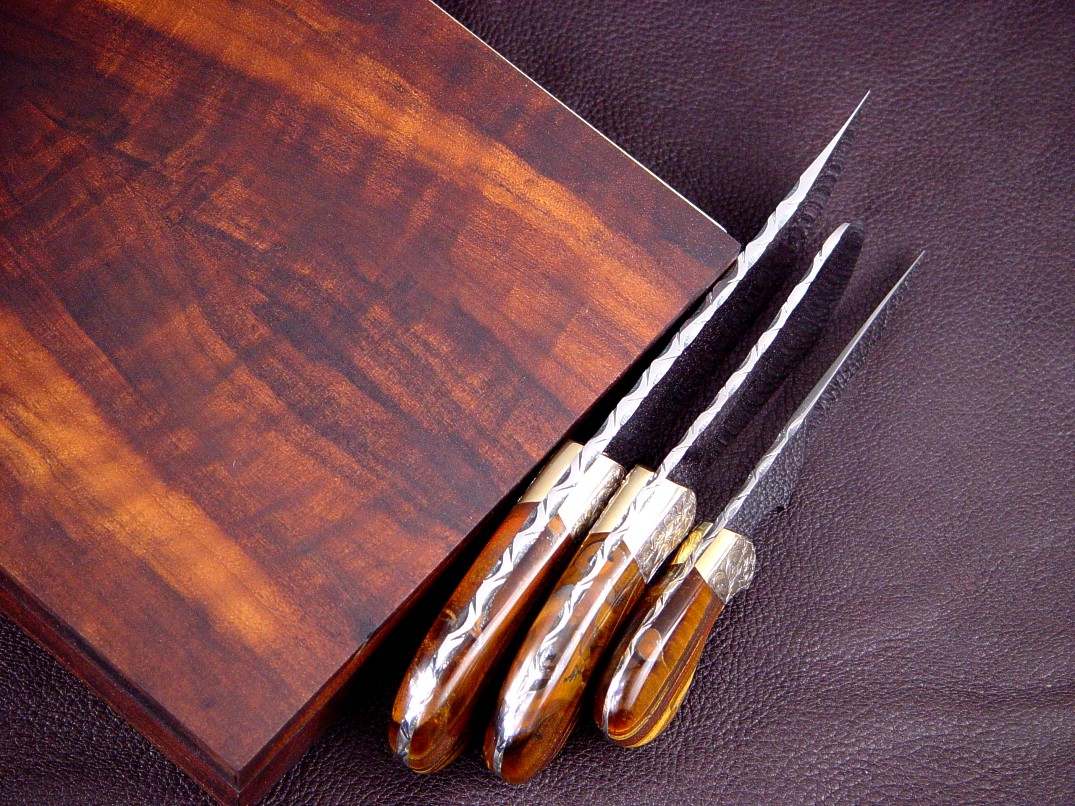 carbon steel damascus, only by special order and request. Each of these has