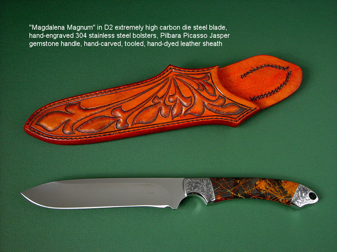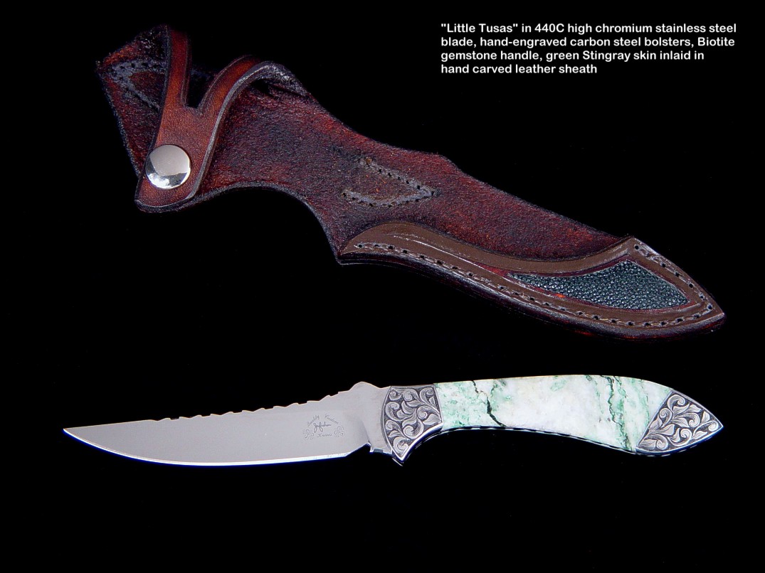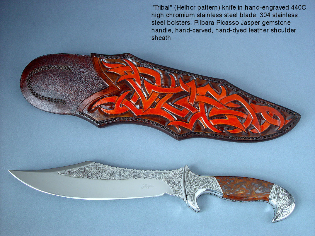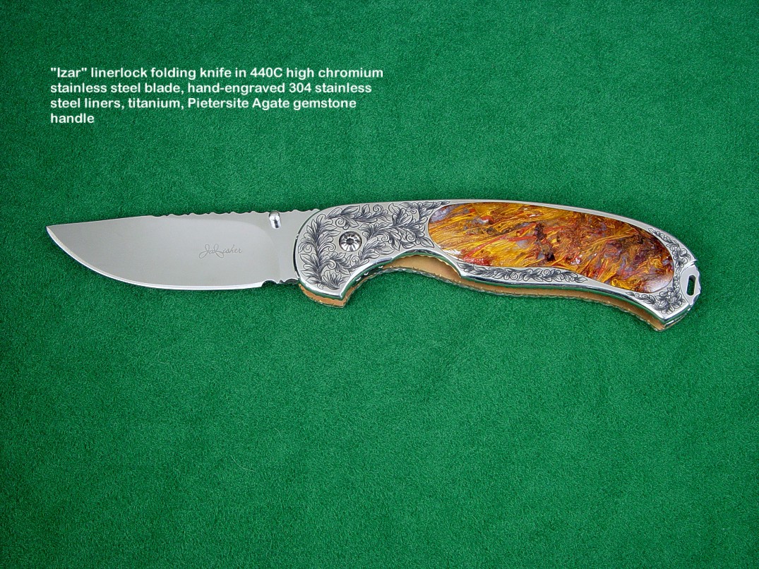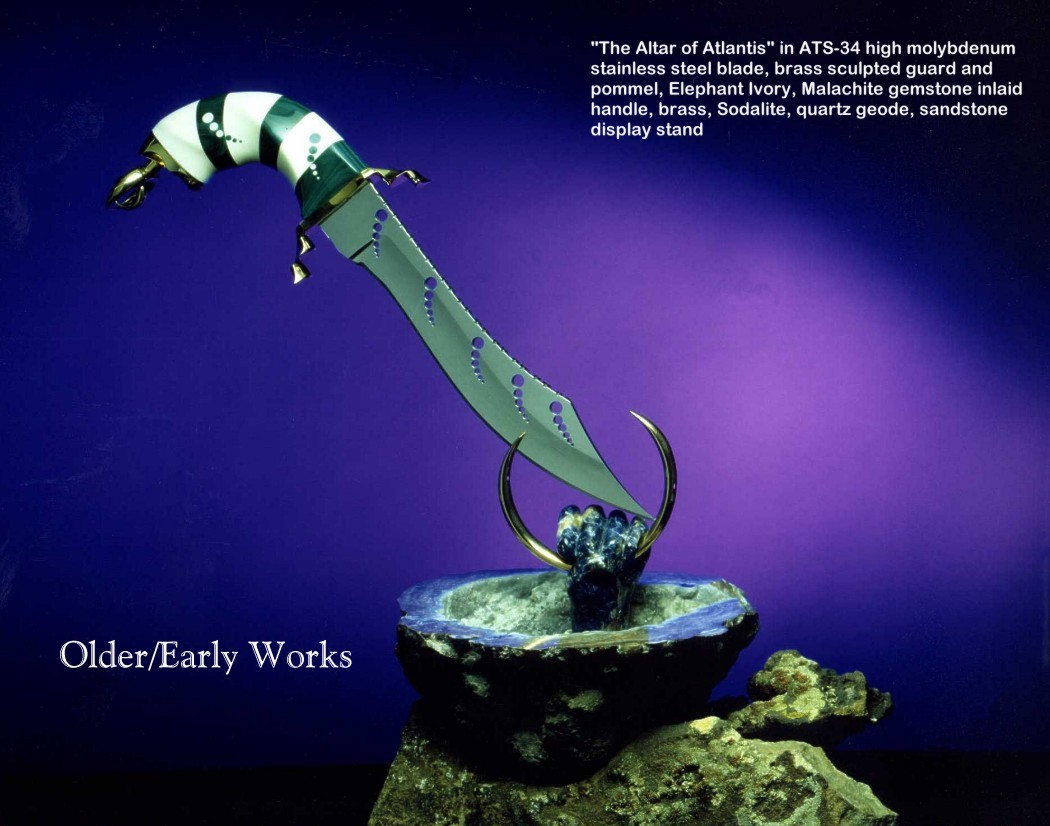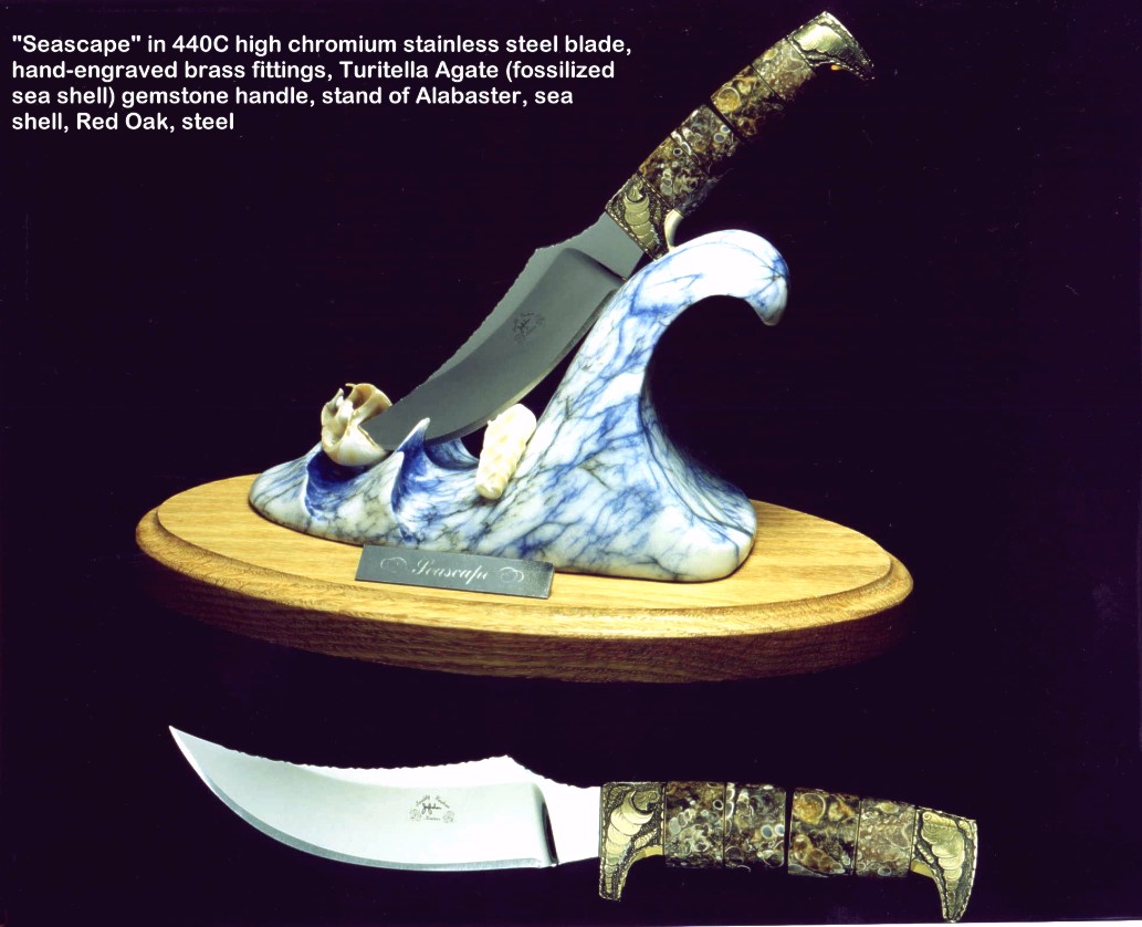 Below are groups of investment and collector's grade knives in captioned thumbnail photos. For many more knives in this genre, I encourage you to visit my Featured Knife page, which has links to individual knife pages that detail, describe, and have interesting comments of the knives as well as additional photographs of both sides of the knife, the spine and edgework, handle close-ups, engraving details, and sheath pictures.