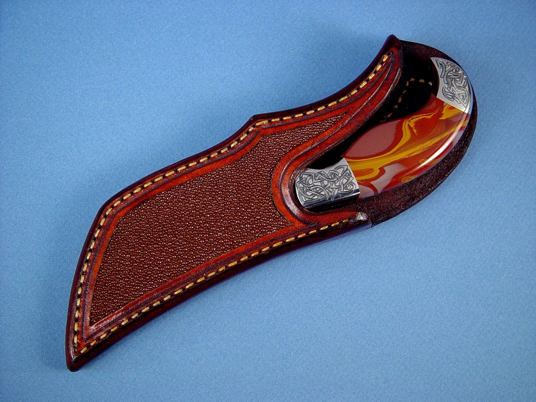 oz. leather shoulder with carved accents. The red-brown sheath