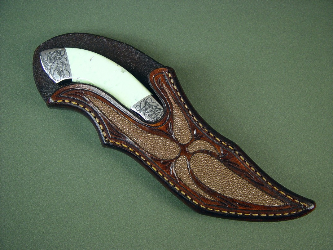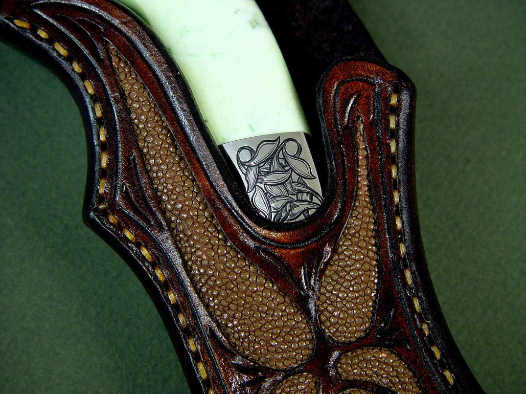 - Sheath: Ray Skin Inlaid in Hand-carved