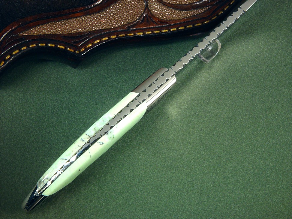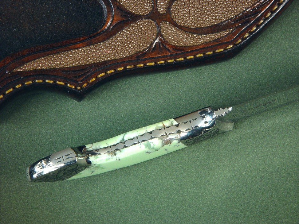 - Handle: Polished Nickel Magnesite/Chrysoprase Gemstone