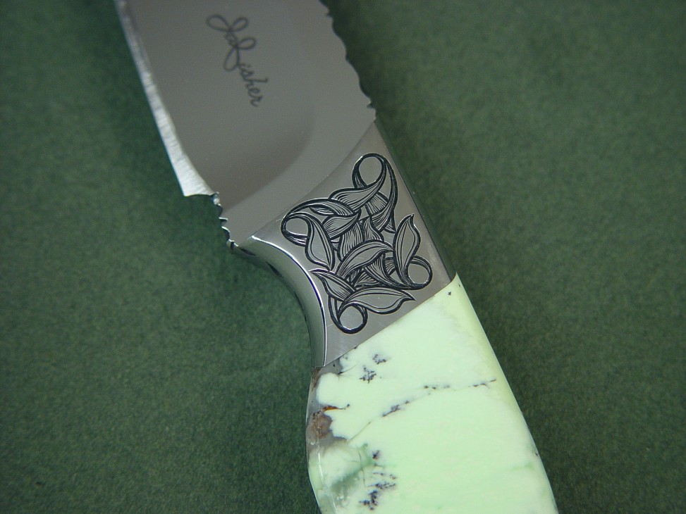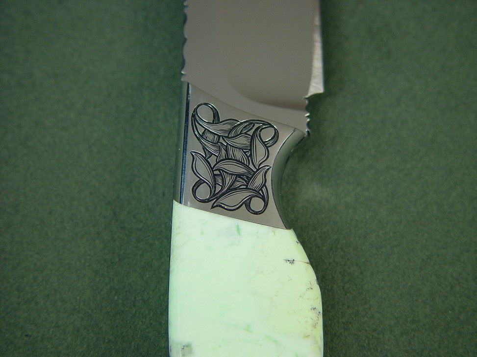 shaped choil. The bolsters are hand-engraved 304 high chromium,