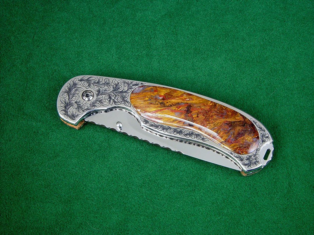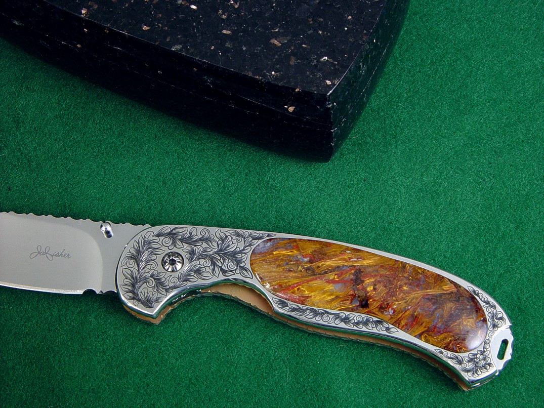 WOW!!!! This knife is exceptional, from the rich depth of the Pietersite agate to the impossibly intricate, near