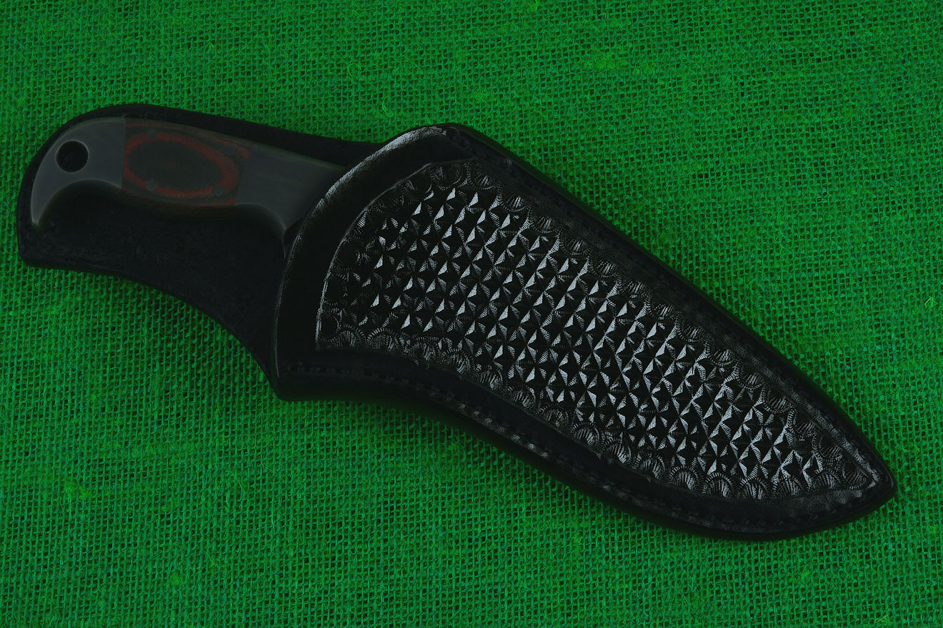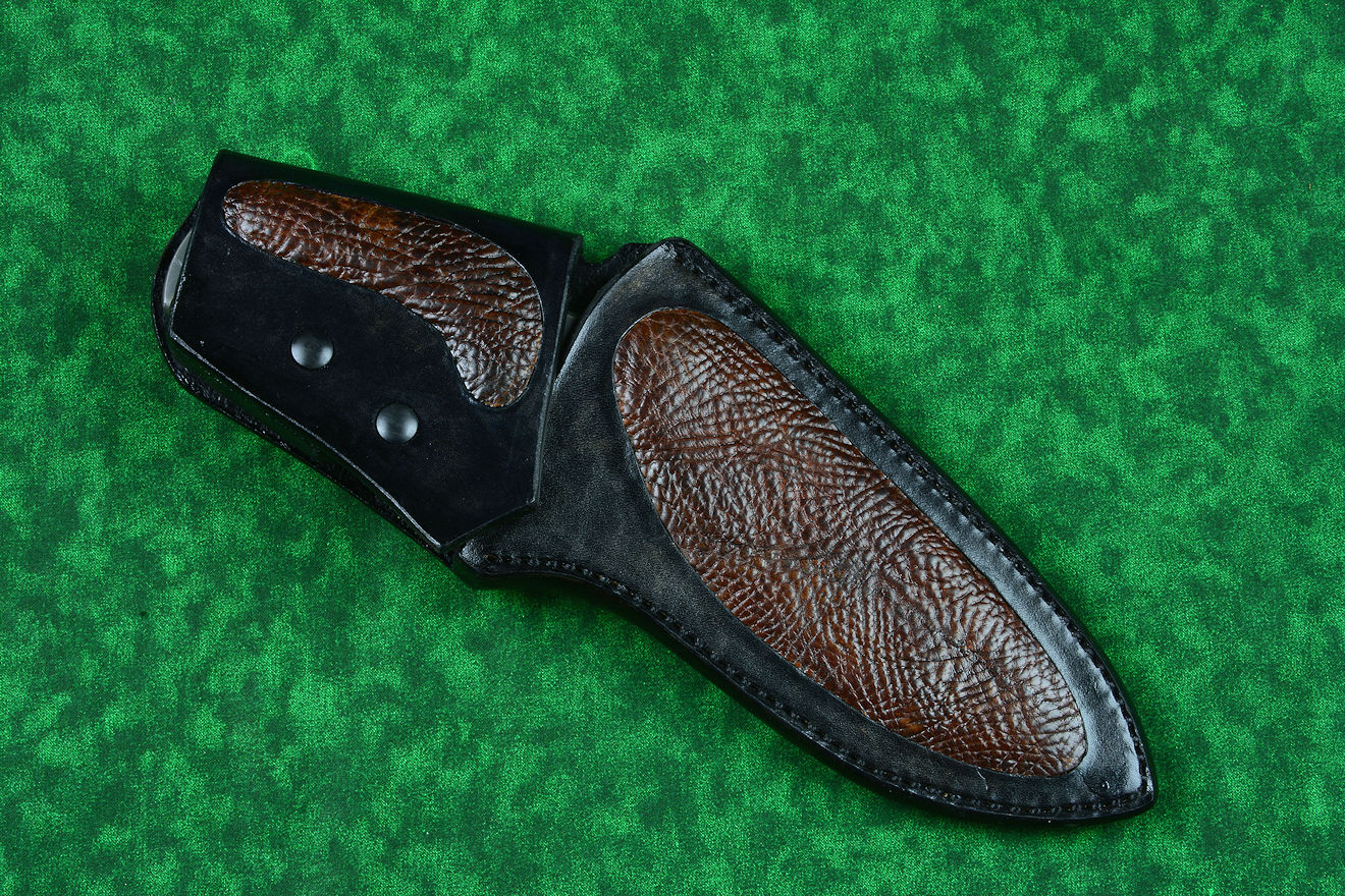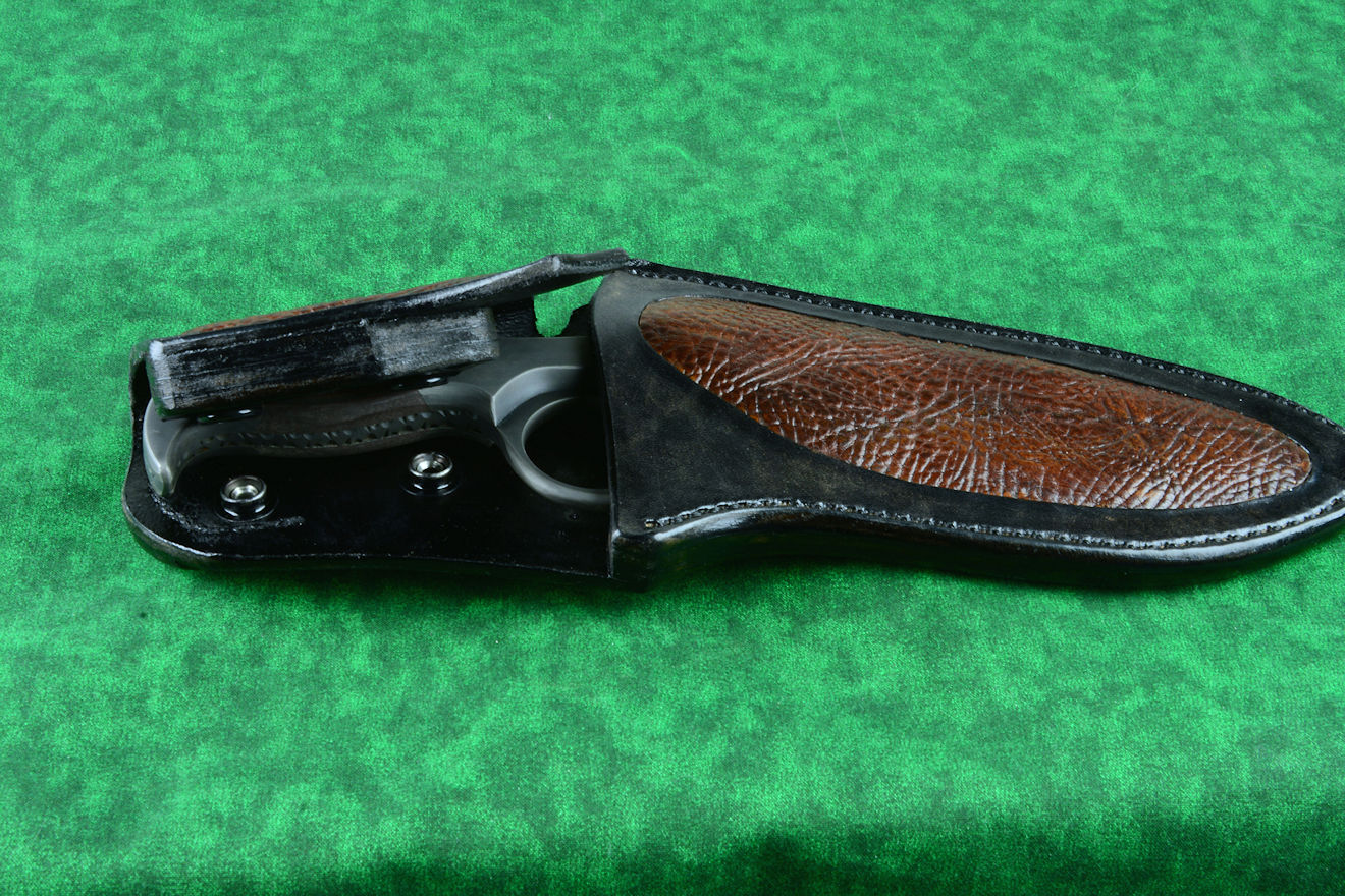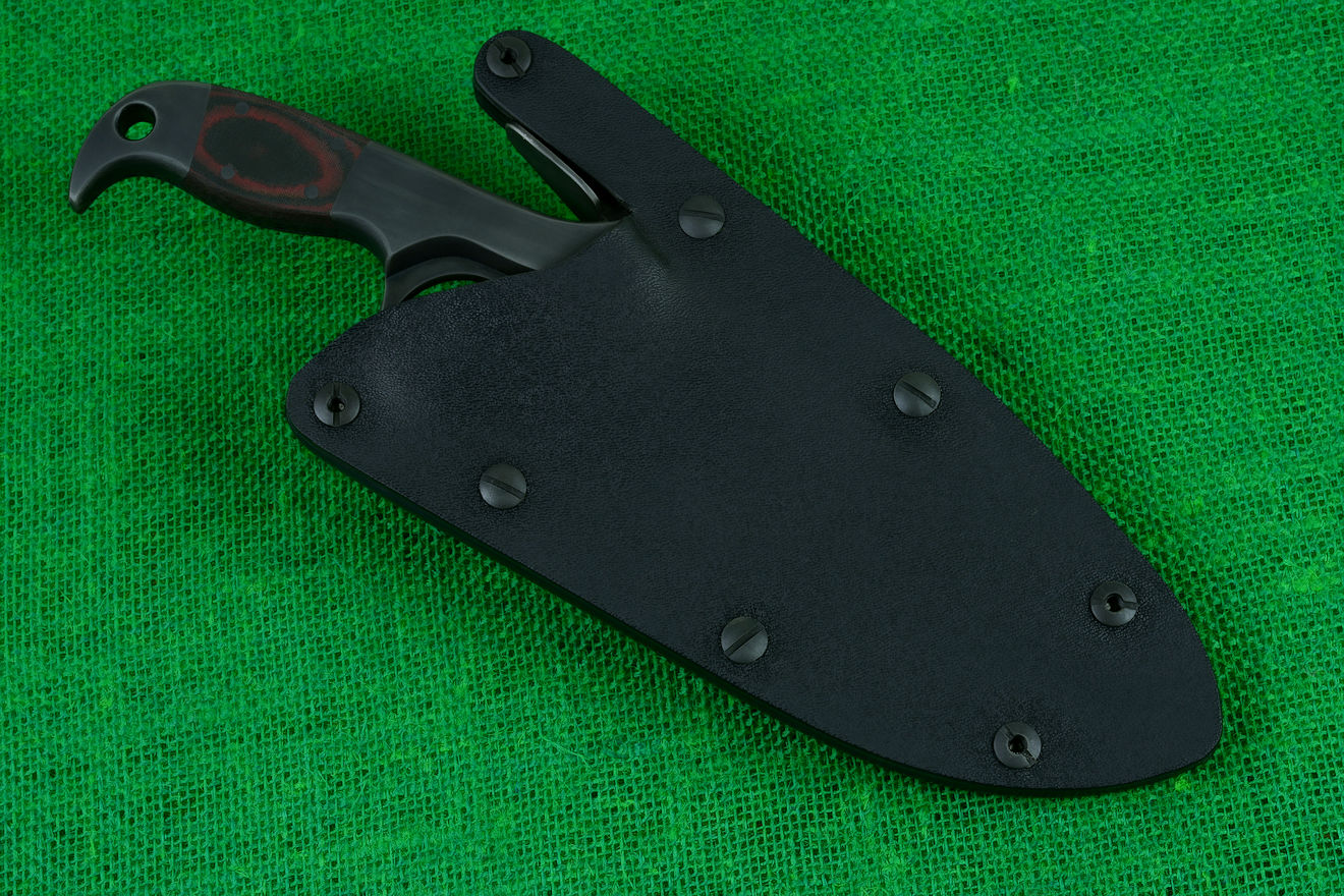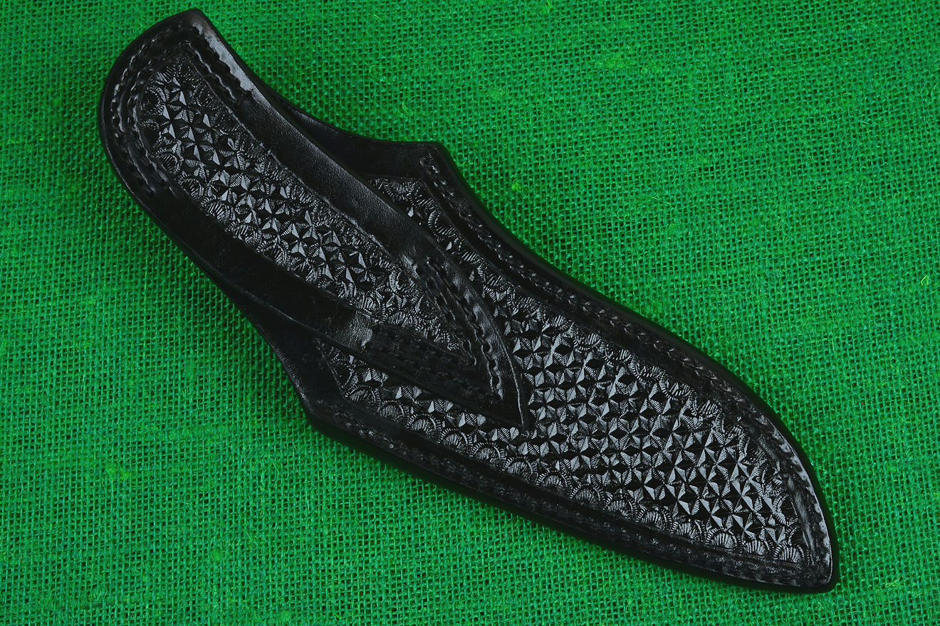 - Sheath: Heavy 9-10 oz. thick leather shoulder, hand-stamped, black lacquered