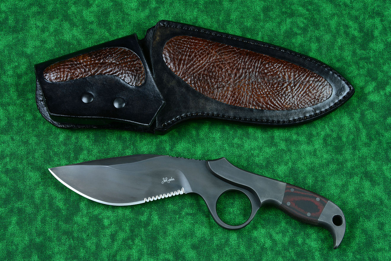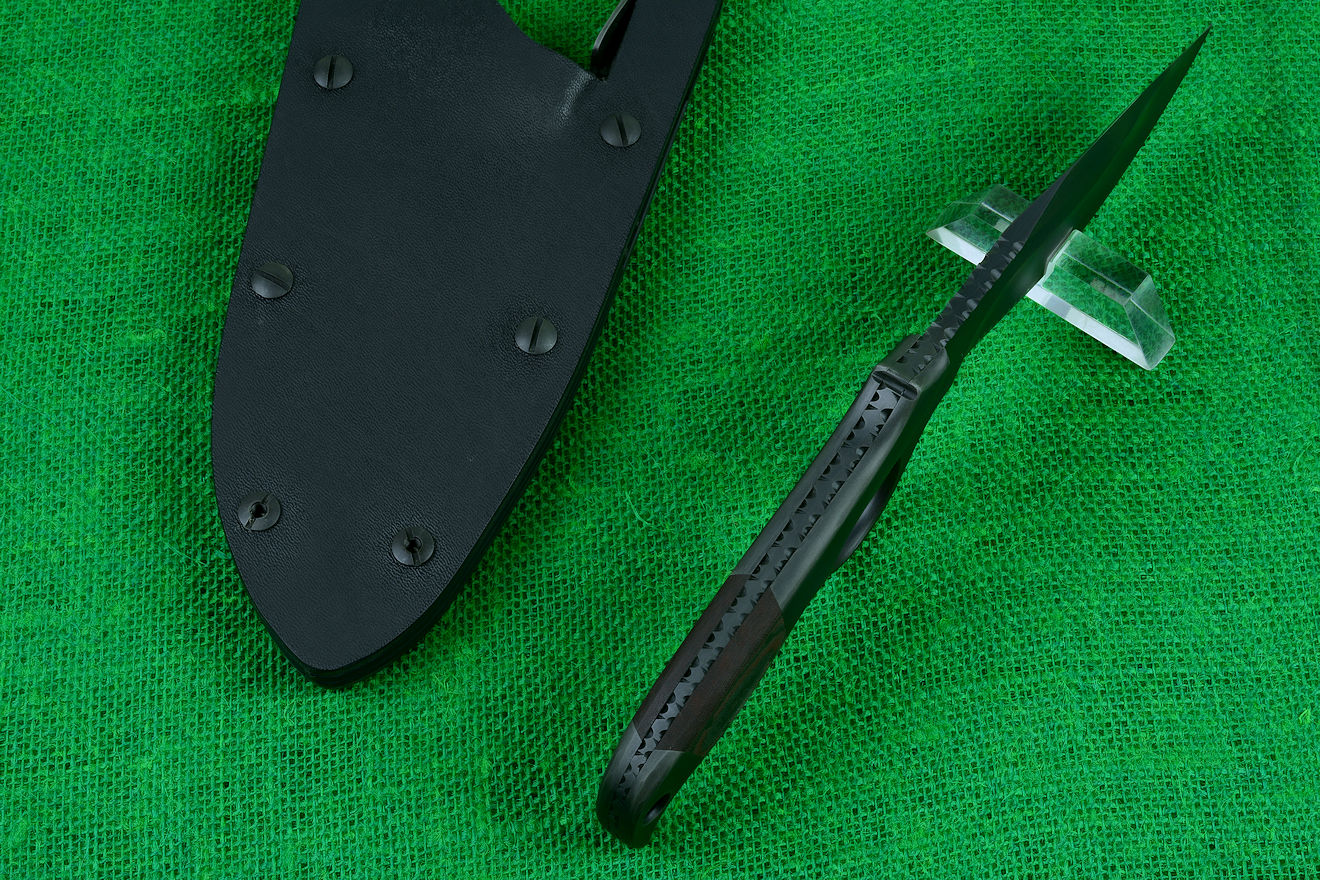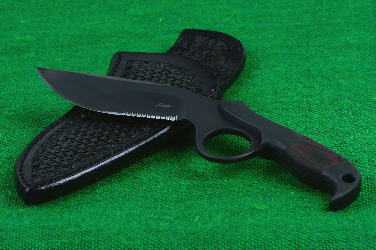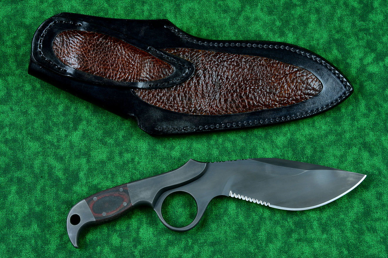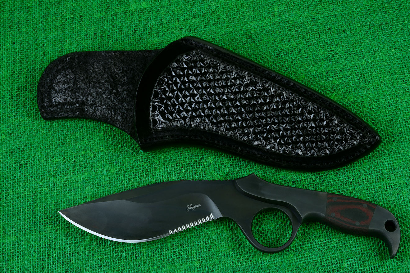 - Sheath: Heavy 9-10 oz. thick leather shoulder, hand-stamped, black lacquered
