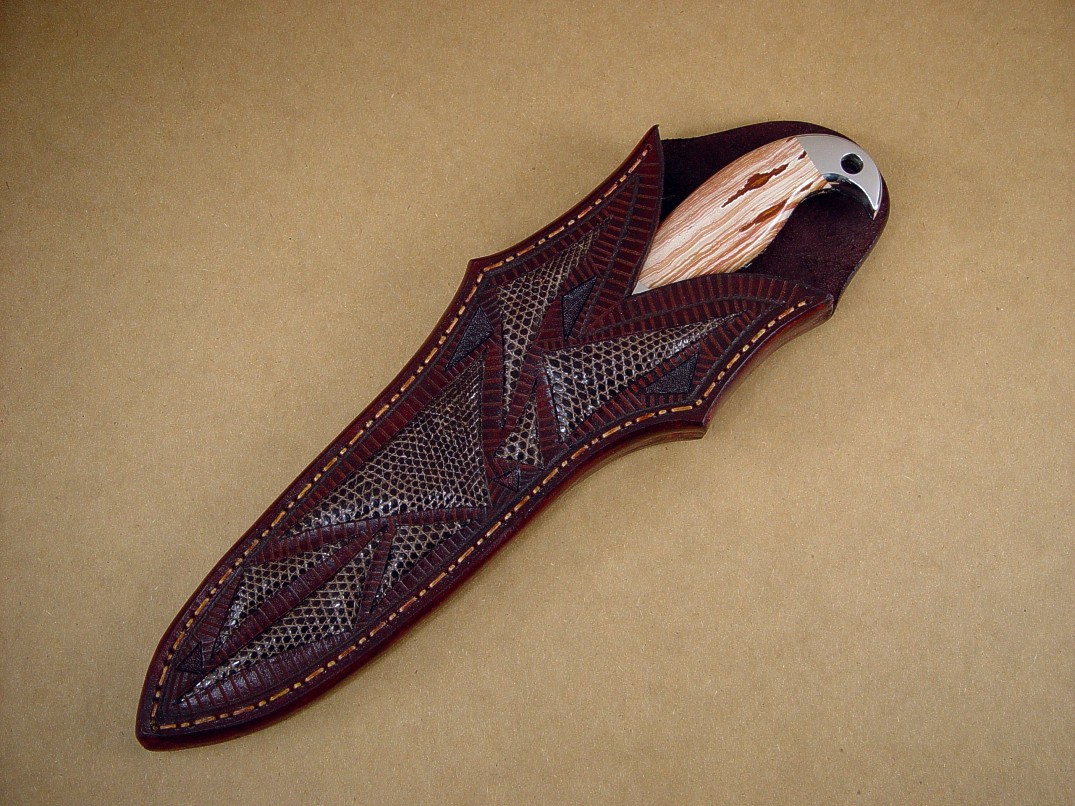 Sheath: Ringmark Lizard Skin Inlaid in Hand-Carved Leather