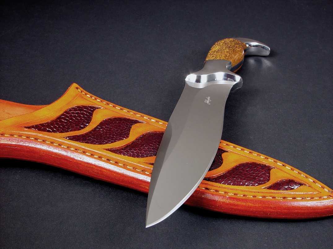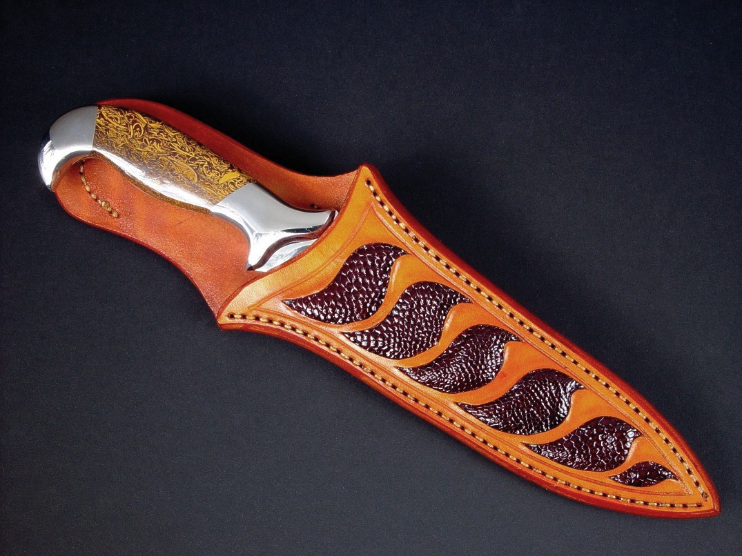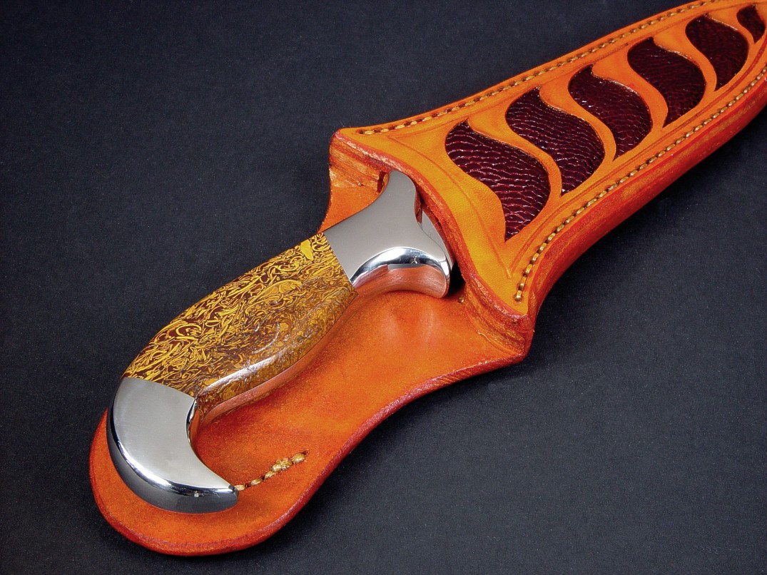 hand-stitched with polyester sinew, lacquered and sealed. The sheath