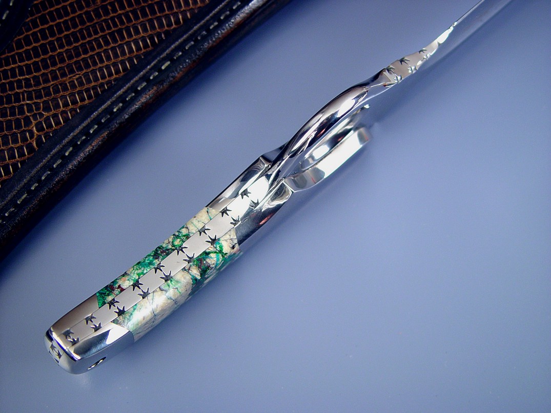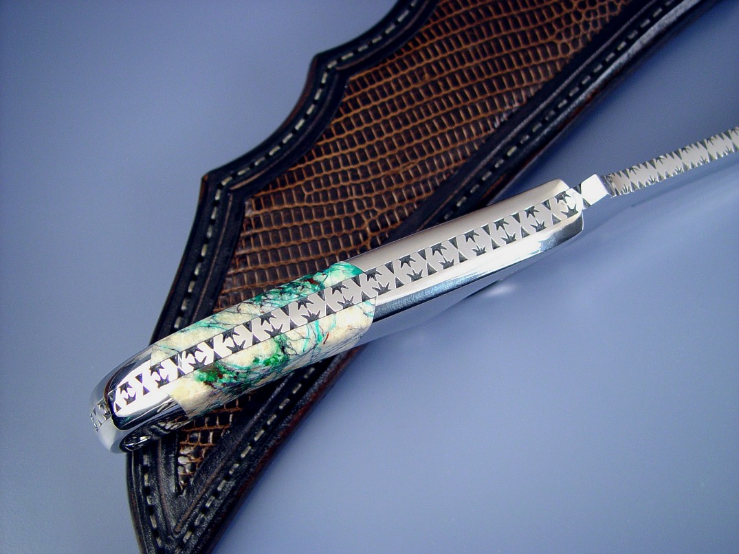 Mosaic gemstone handle scales, a striking mixture of Copper Ore,