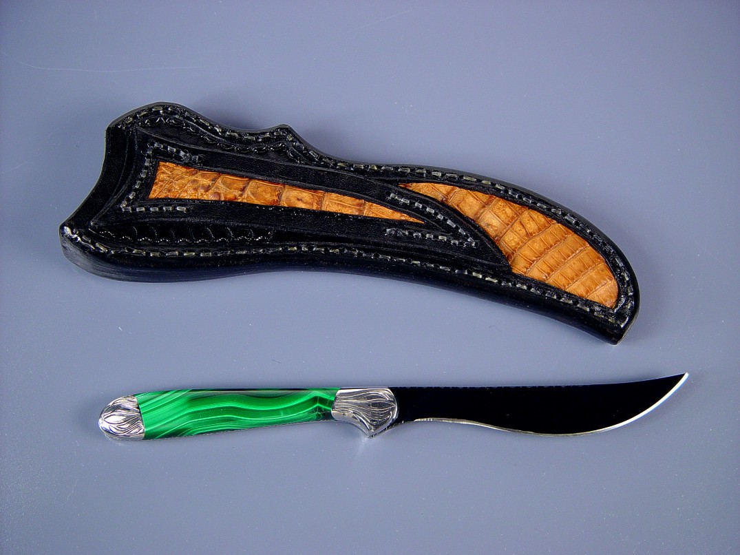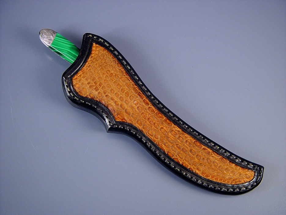 sculpted hand-carved sheath of leather shoulder, inlaid with