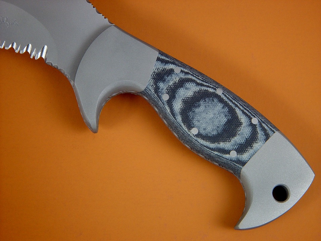trapping, seizing, and very heavy ripping cuts. The knife has bold