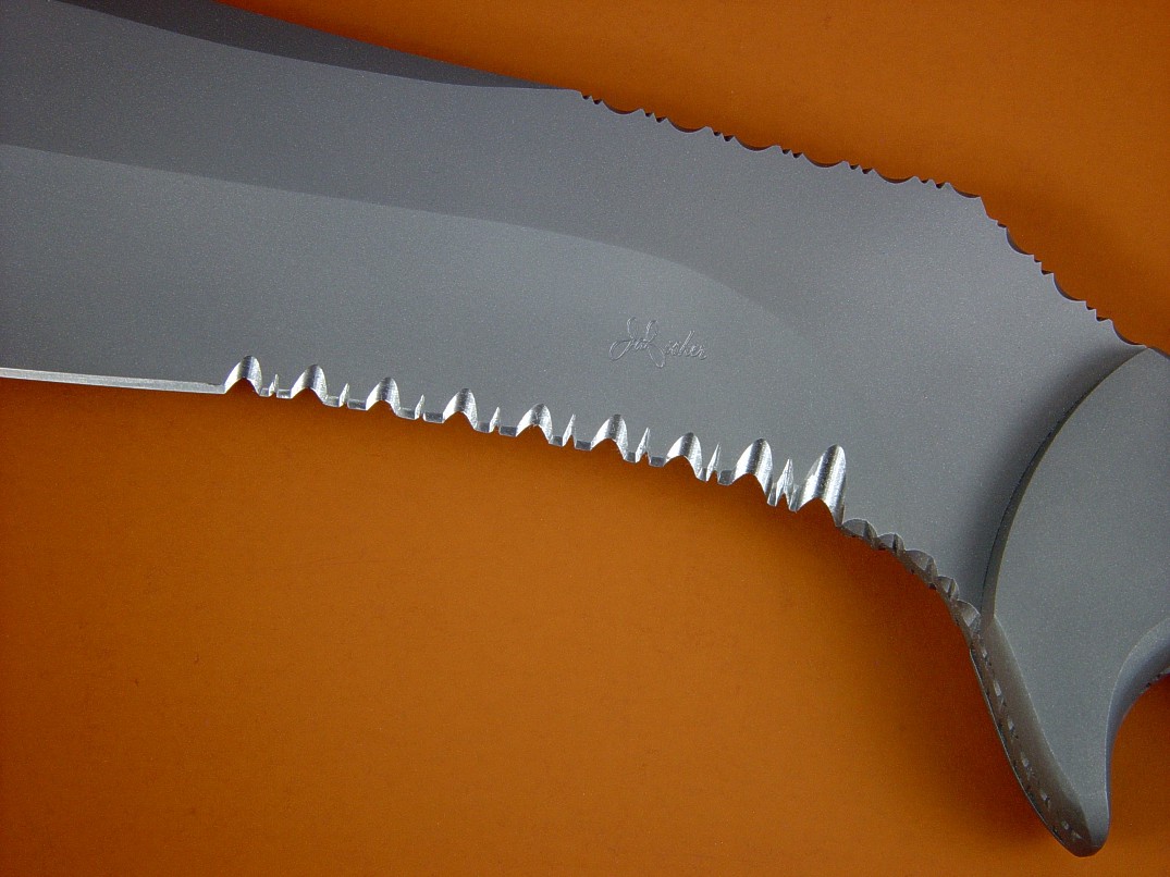 The blade has 2.5 inches of my large Piranha rip tooth serrations for