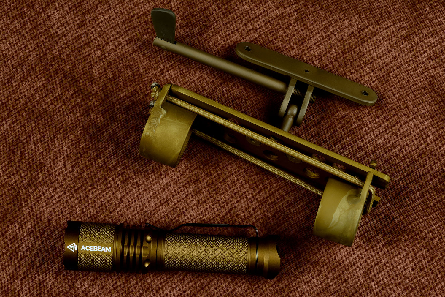 axis of the sheath), coyote brown anodized 5052H32 high strength