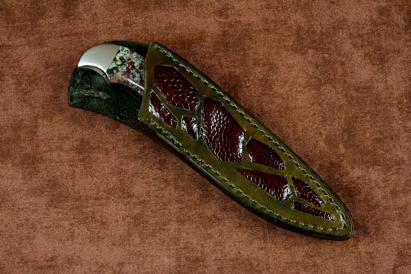 crystals in the handle. The sheath is dyed with a russet-gray-green