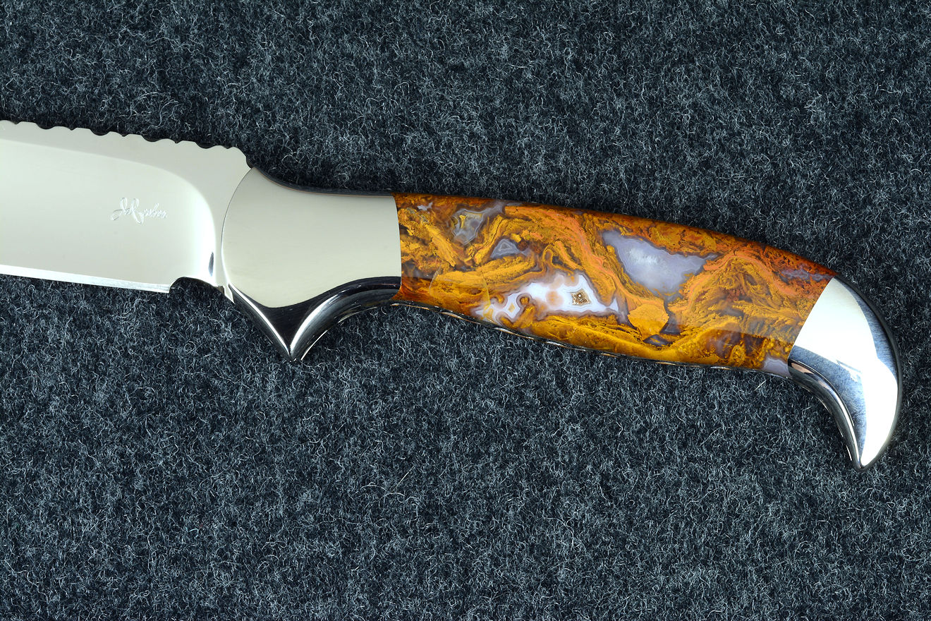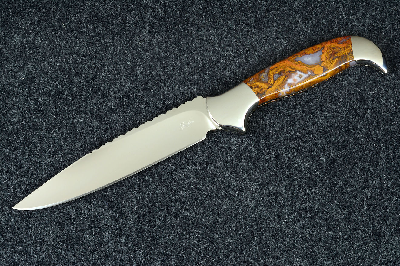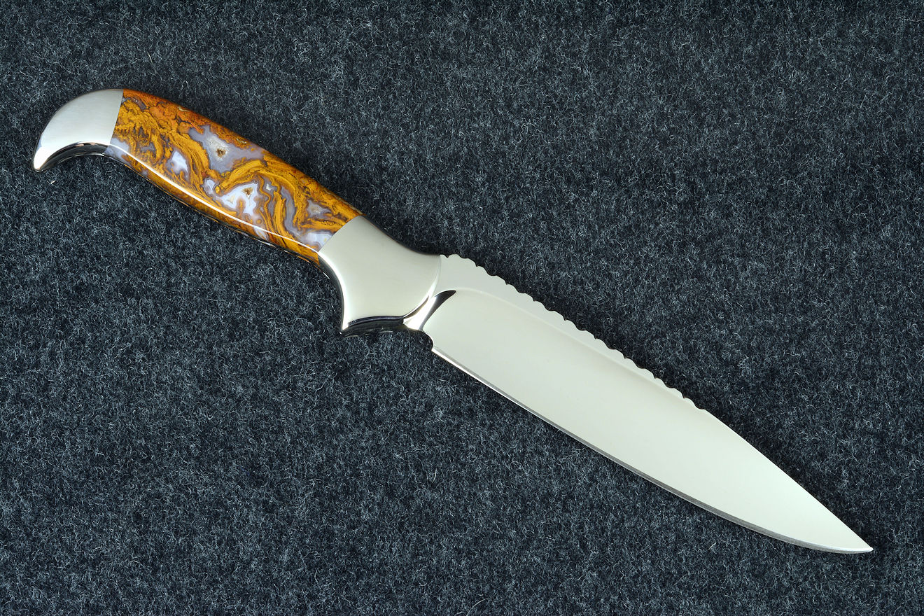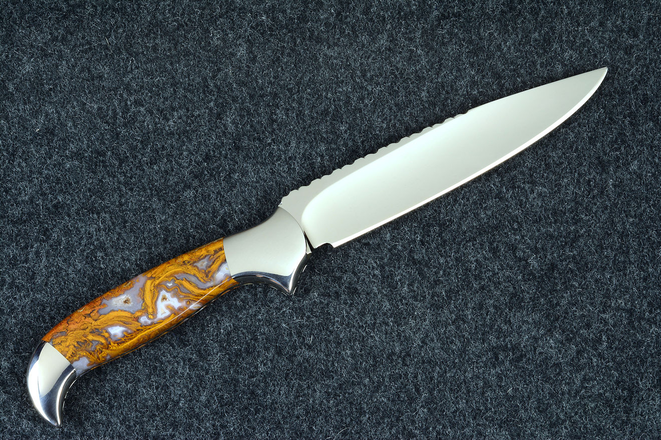 blade has a harpoon-type spine rise, and the point is long and lance-shaped.